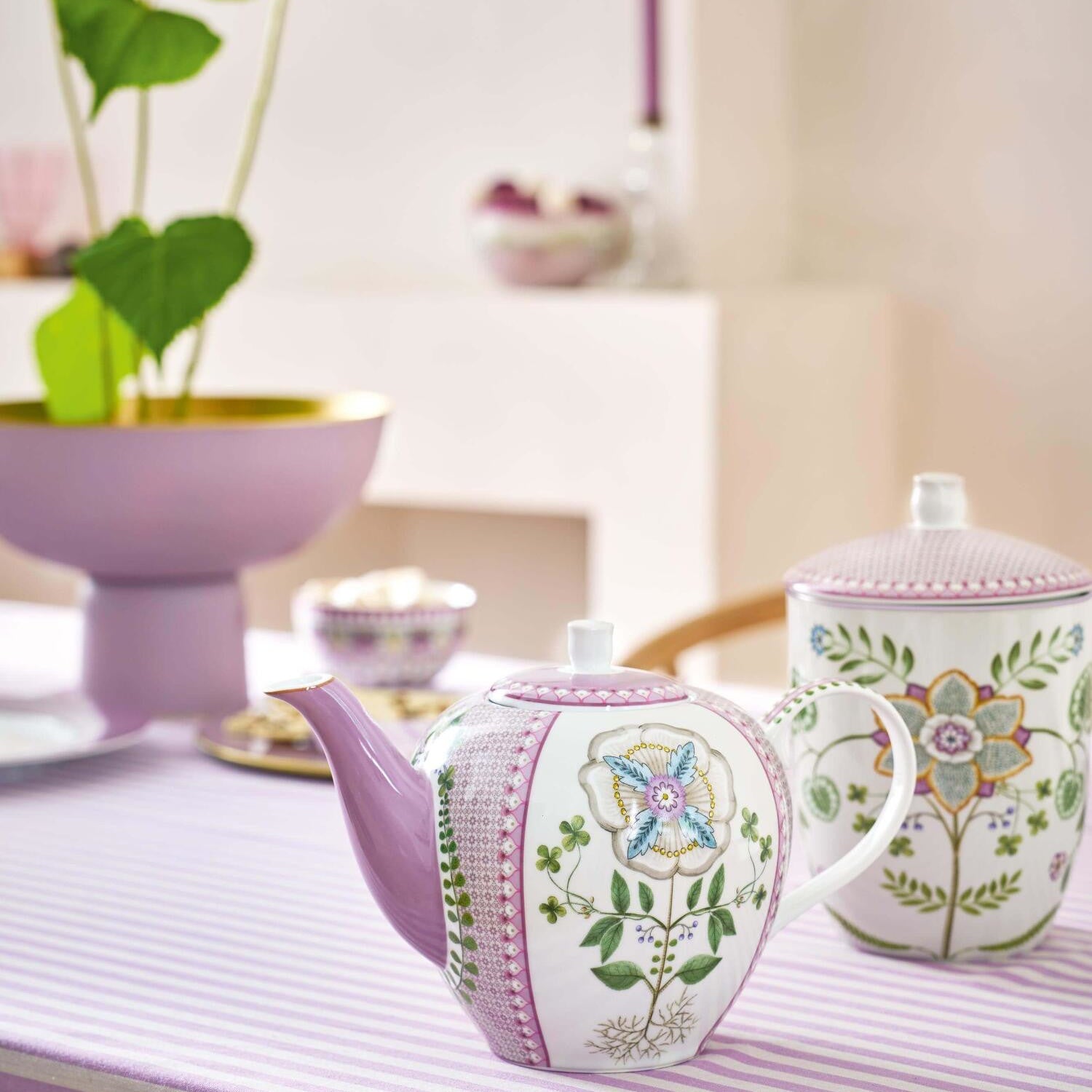 It's tea-time! In stilvoller Eleganz schmückt die wundervolle Teekanne "Lily & Lotus Tiles" von Pip Studio deine Kaffeetafel. Ihre klassische Form in Kombination mit einem floralen Design in Grün- und Violetttönen auf hochwertigem Porzellan macht die Kanne zum Hingucker und geliebten Geschirrstück jedes Teeliebhabers. Mit einem Fassungsvermögen von 1,6 Litern bist du und deine Gäste bestens versorgt um eine gemütliche Teestunde zu genießen!