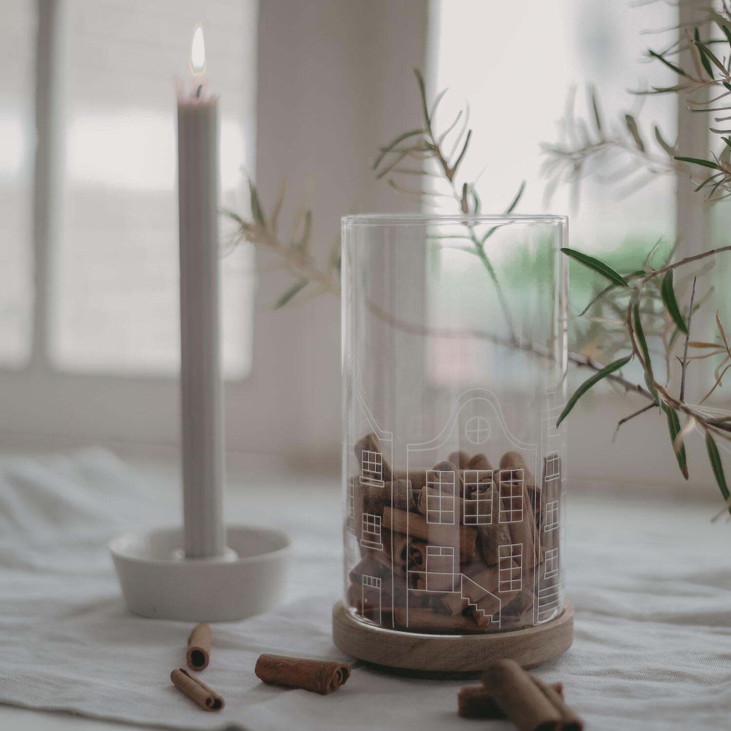 Ob als Windlicht für eine stimmungsvolle Blockkerze auf deinem Adventskaffeetisch oder als charmante Aufbewahrung für selbstgebackene Plätzchen - dieses Glas bietet dir vielseitige Möglichkeiten! Der Deckel aus naturbelassenem Akazienholz, läst sich luftdicht verschließenden - so bleiben deine Leckereien länger frisch und du kannst sie stilvoll präsentieren.