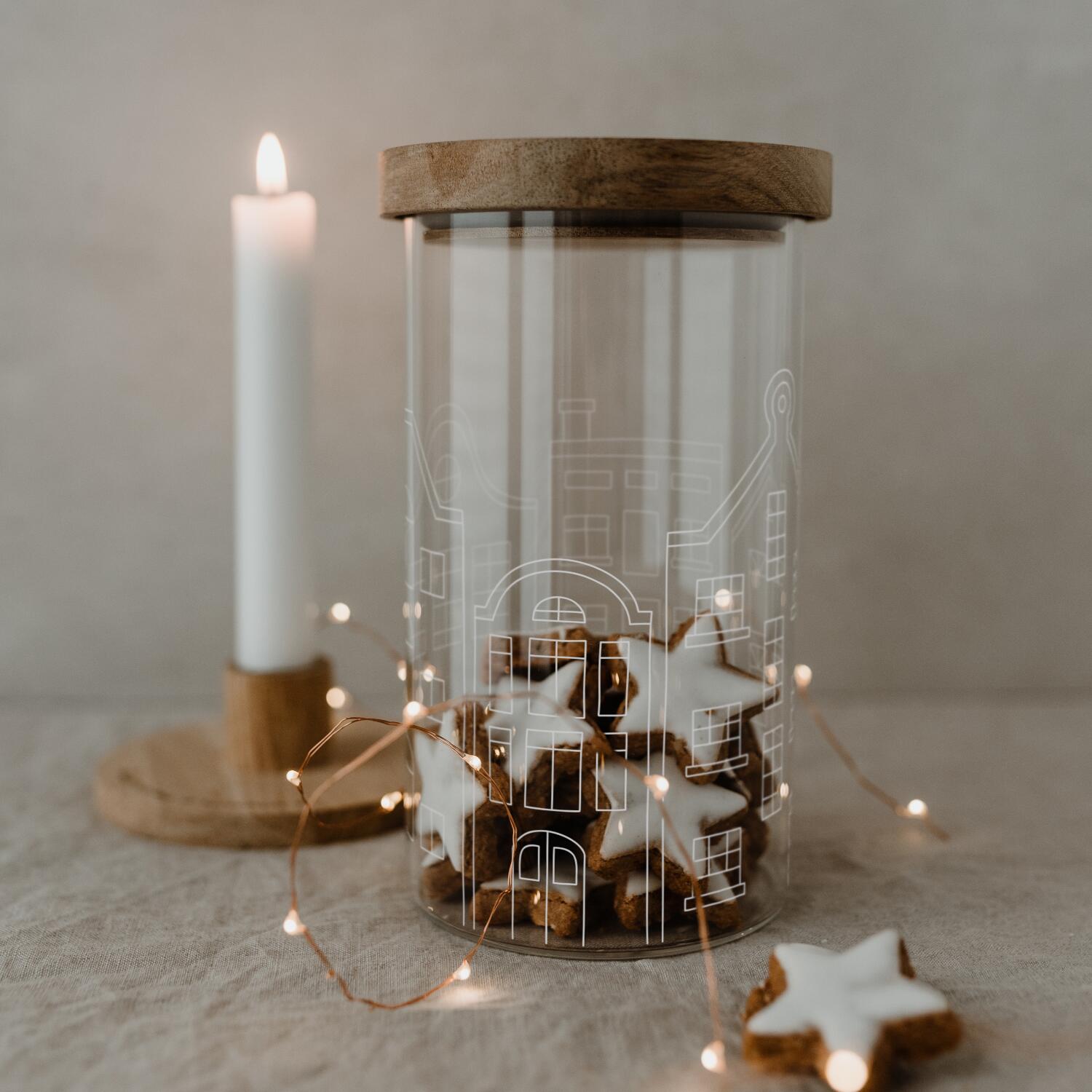 Festliche Aufbewahrung: Vorratsglas "Häuser" - Perfekt für die Weihnachtszeit