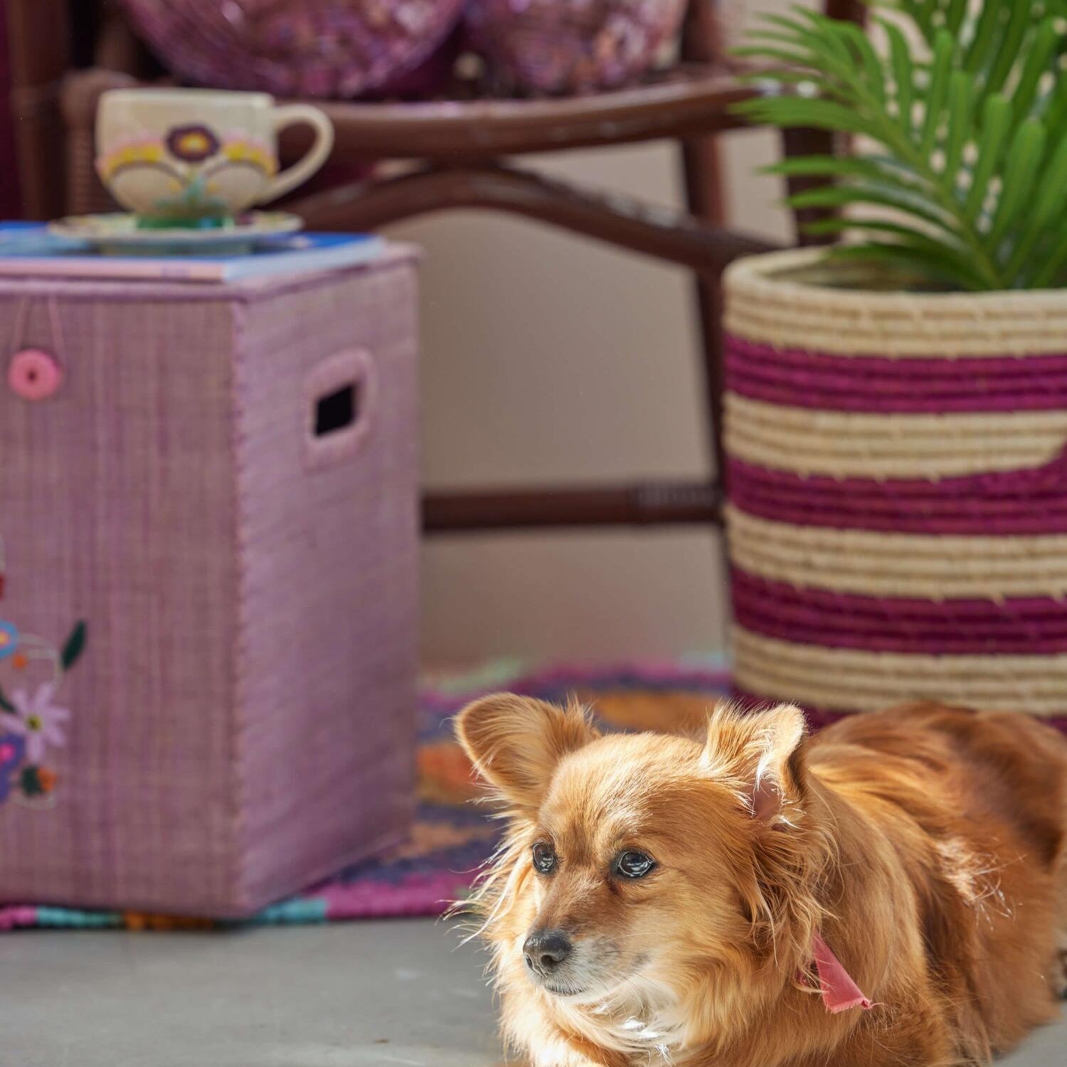rice Wäschekorb/Aufbewahrungskorb "Raffia" - Klein (Aubergine)