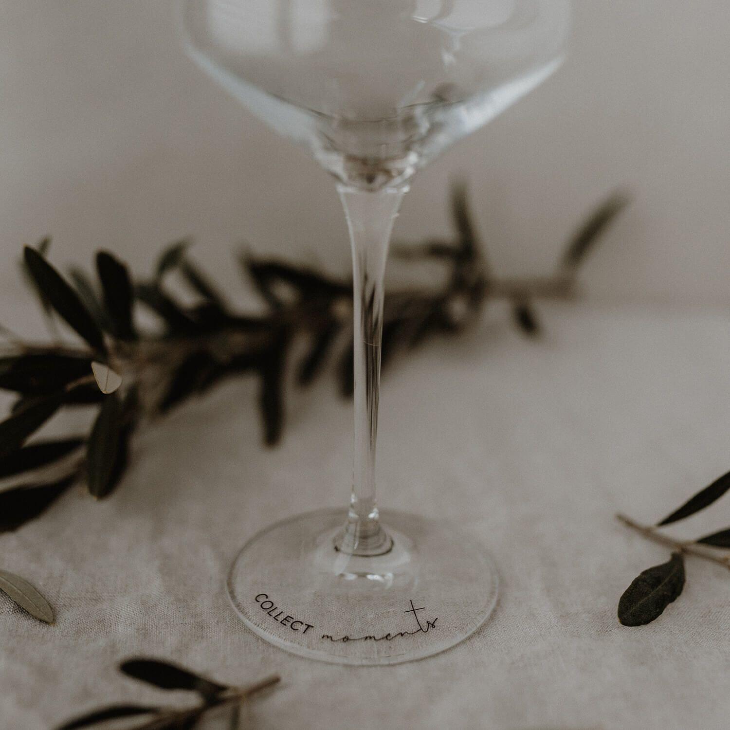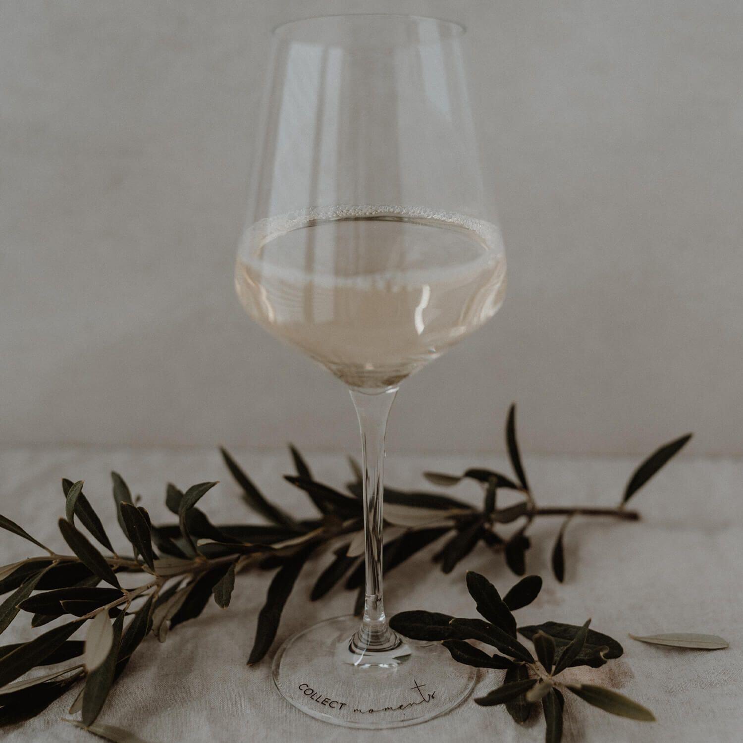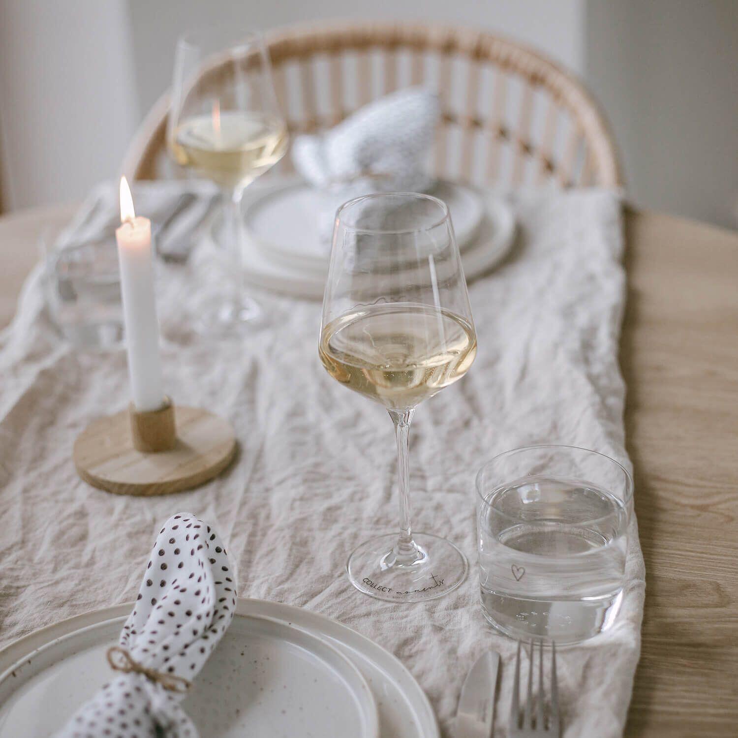 Mit dem Weinglas "Collect Moments" von Eulenschnitt verwandelst du jeden Schluck in ein kleines Ritual. Das feine, schlanke Design wirkt leicht und elegant, der dezente Schriftzug am Glasfuß zaubert ein Lächeln am Tisch und macht jeden Abend besonders.