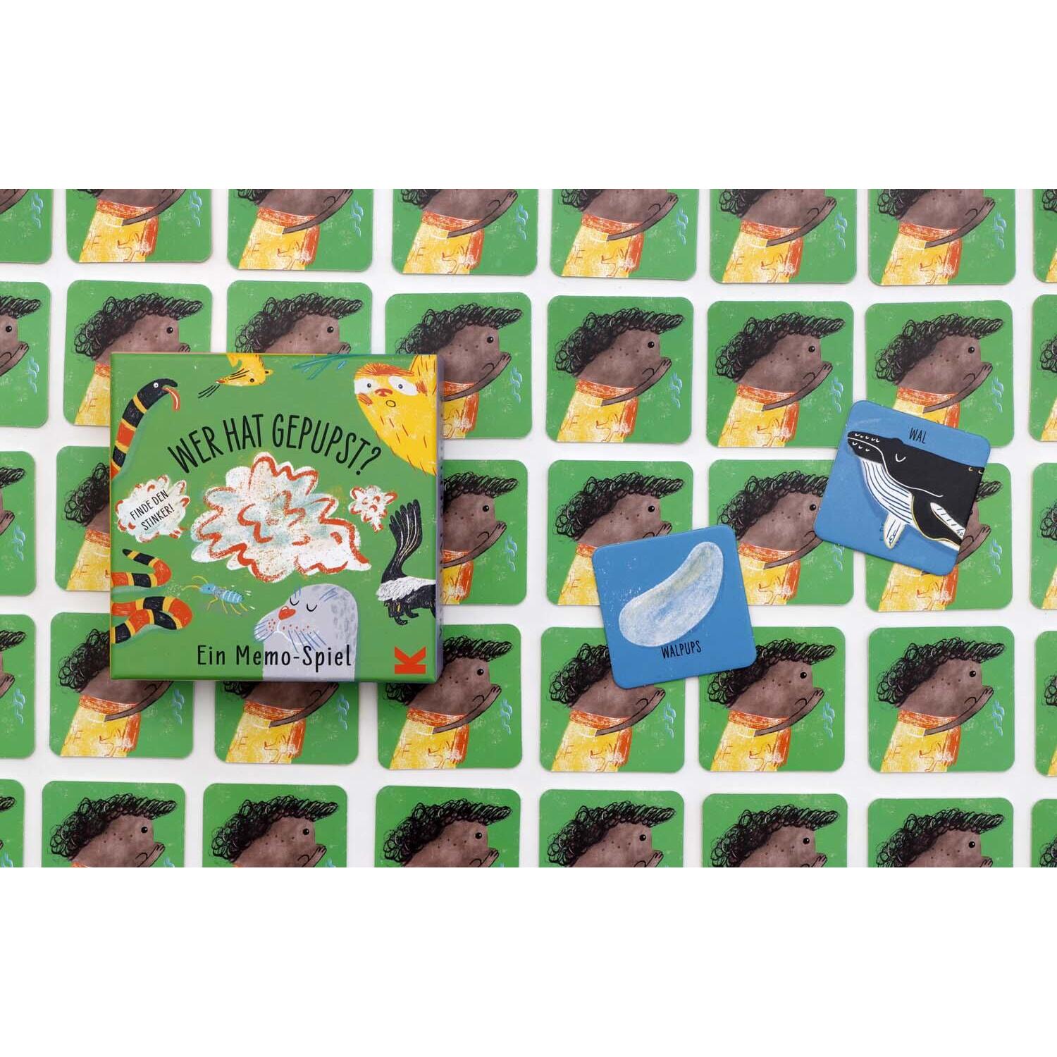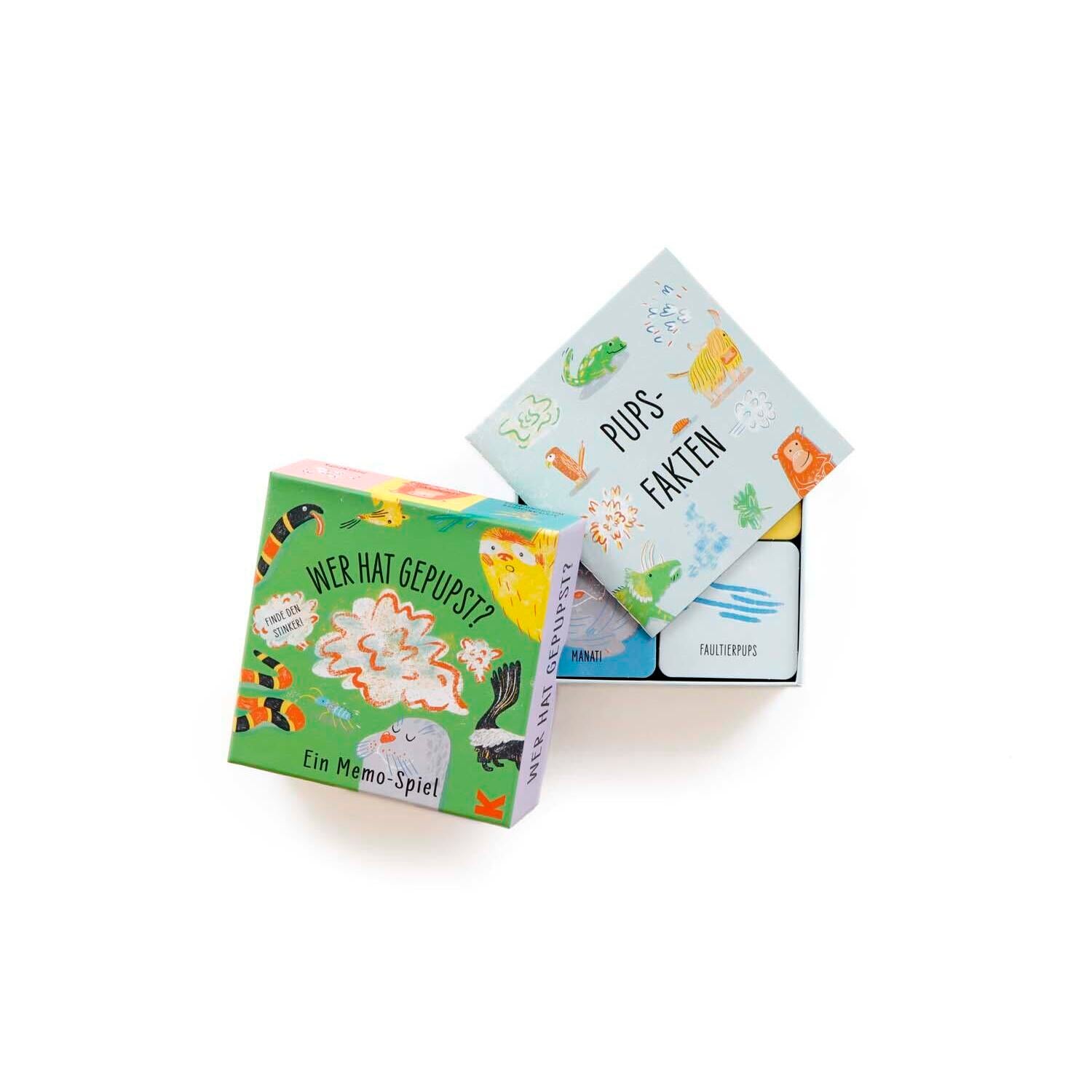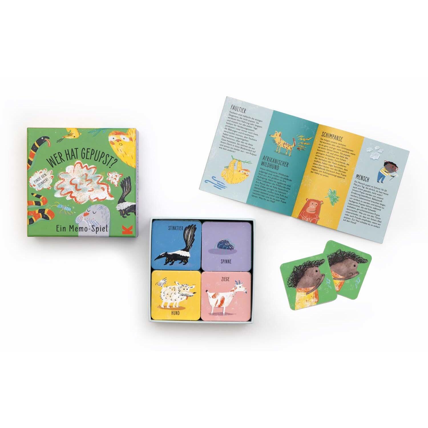 Puuuh, das stinkt! Aber die Pupse von welchem Tier stinken am dollsten? Welches Tier erschrickt vor seinen eigenen Pupsen? Und welches Tier rülpst, anstatt zu pupsen? In diesem Memo ordnet ihr allen 26 Tieren ihre jeweiligen Pupse zu. Wer die meisten passenden Pärchen findet, gewinnt! Im beiliegenden Booklet erfahrt ihr außerdem jede Menge über die Pupse der einzelnen Tiere. Ein lustiges Memo für Groß und Klein!