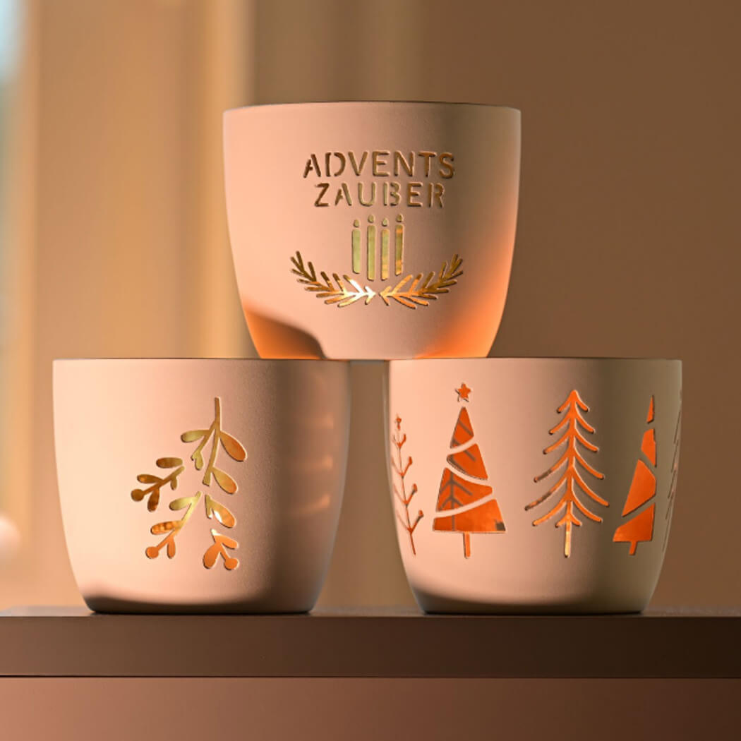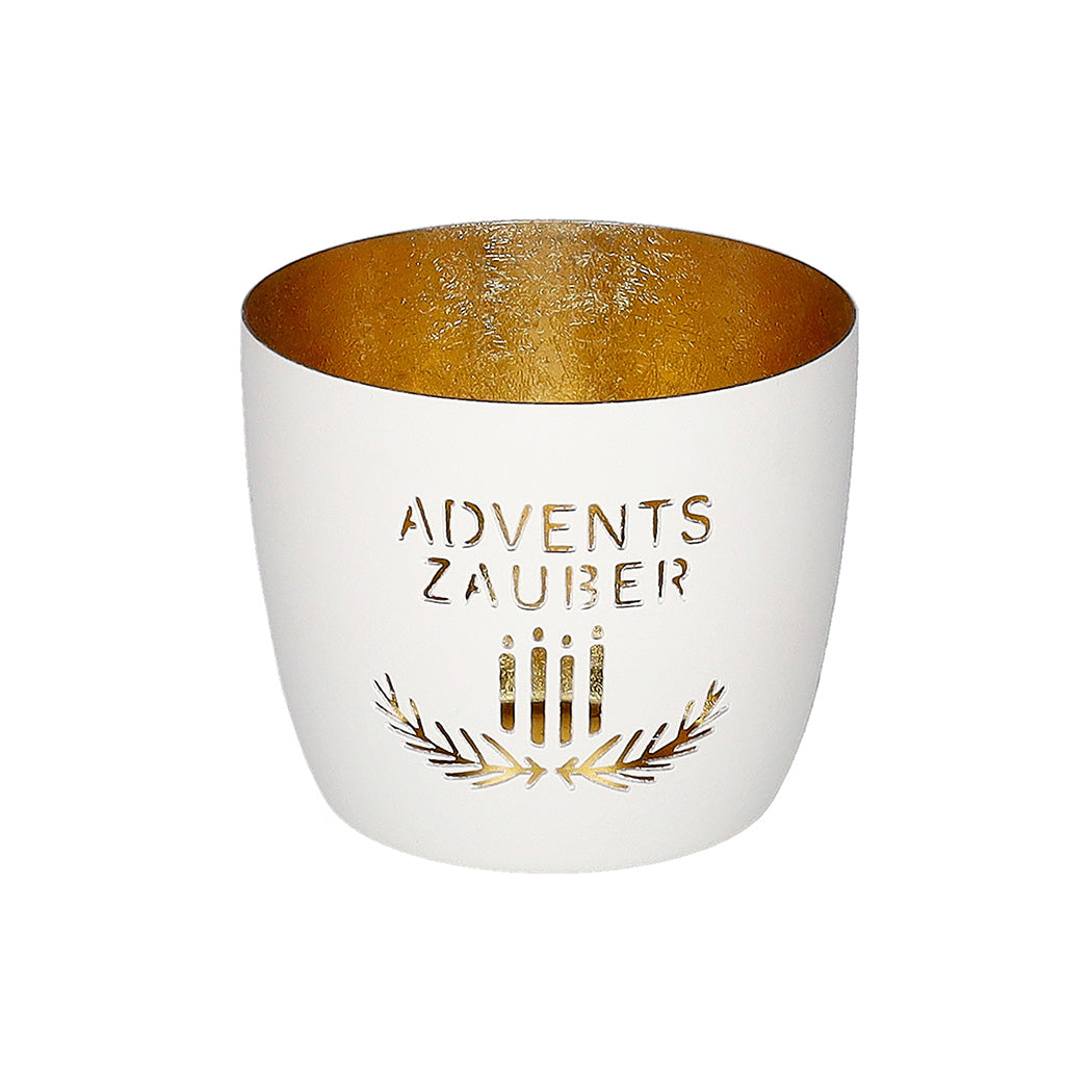 - Madras, Windlicht, M, Motiv: Adventszauber, weiß/gold