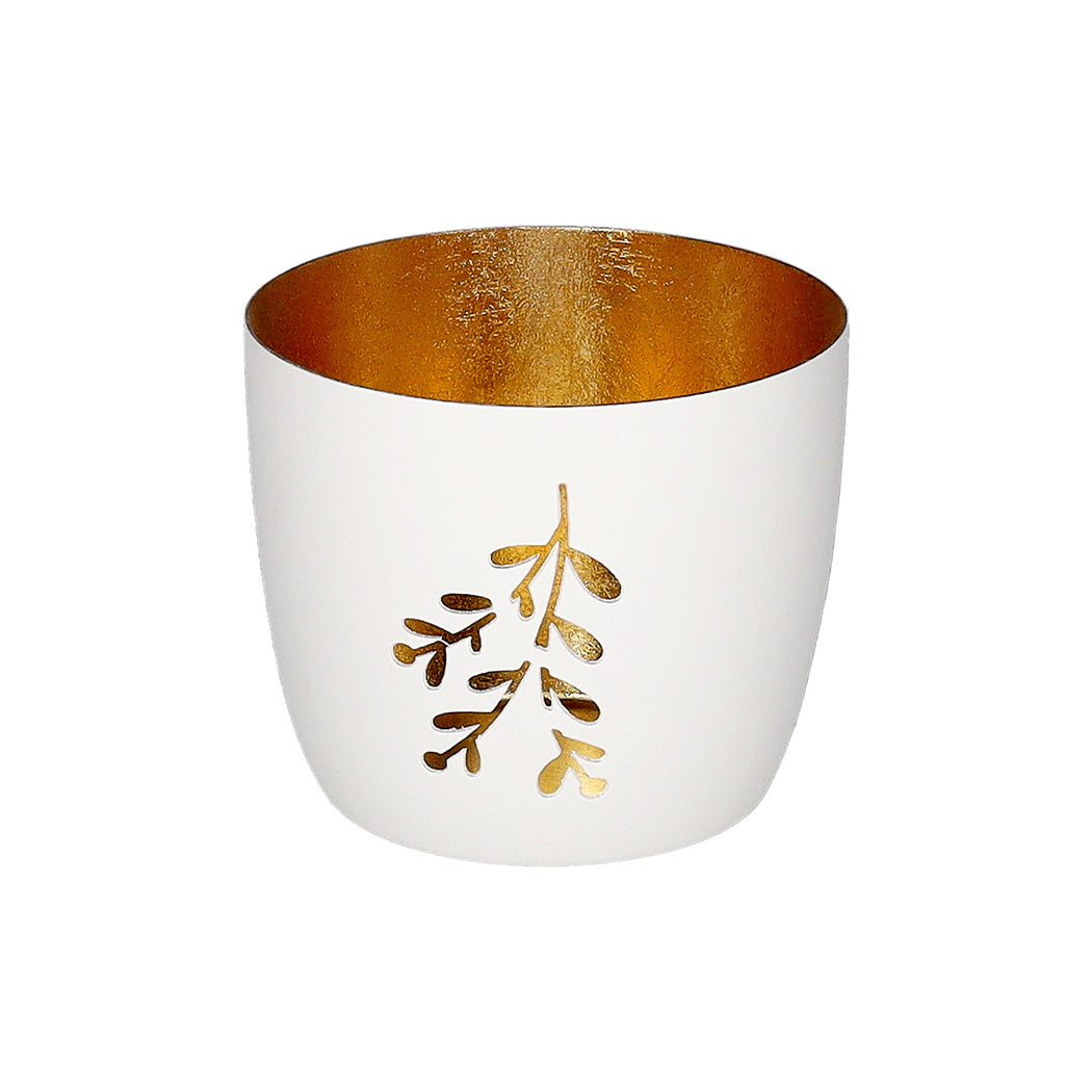 - Madras, Windlicht, M, Motiv: Mistelzweig, weiß/gold