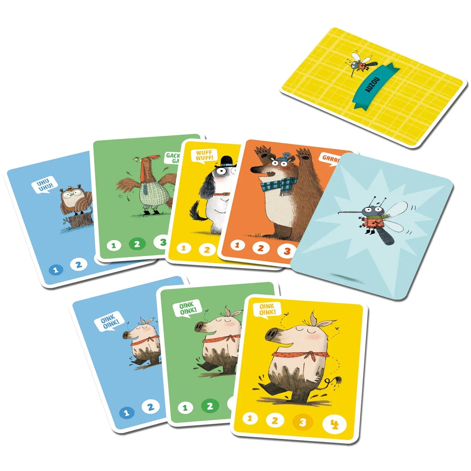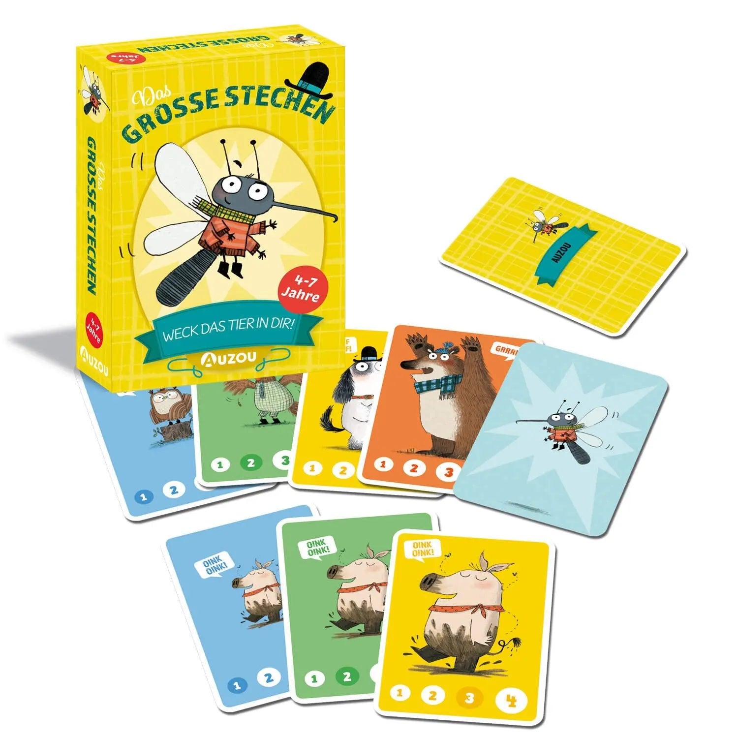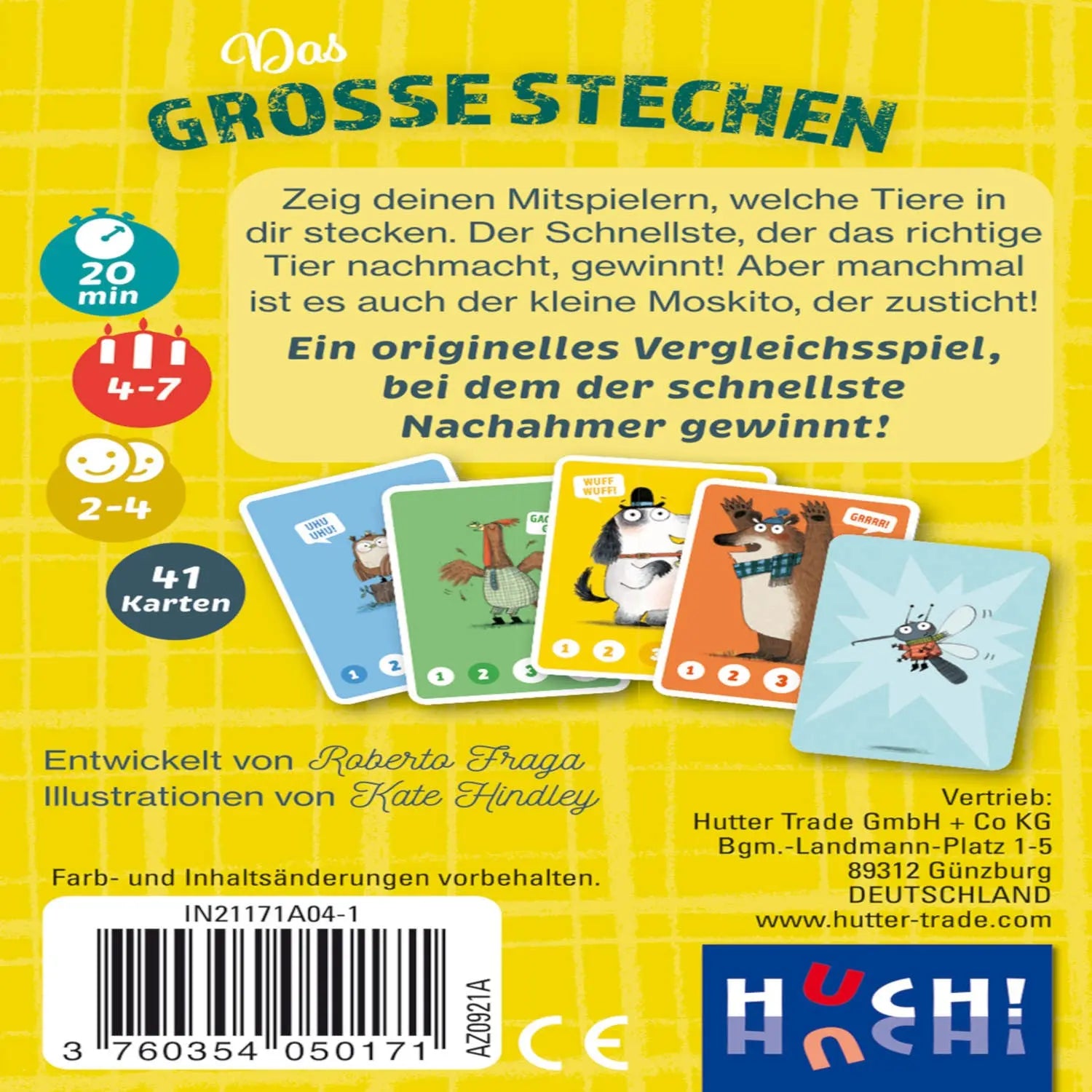 Beobachtung und Geschwindigkeit Zeig deinen Mitspielern, welche Tiere in dir stecken. Der Schnellste, der das richtige Tier nachmacht, gewinnt! Aber manchmal ist es auch der kleine Moskito, der zusticht! Ein originelles Vergleichsspiel, bei dem der schnellste Nachahmer gewinnt!