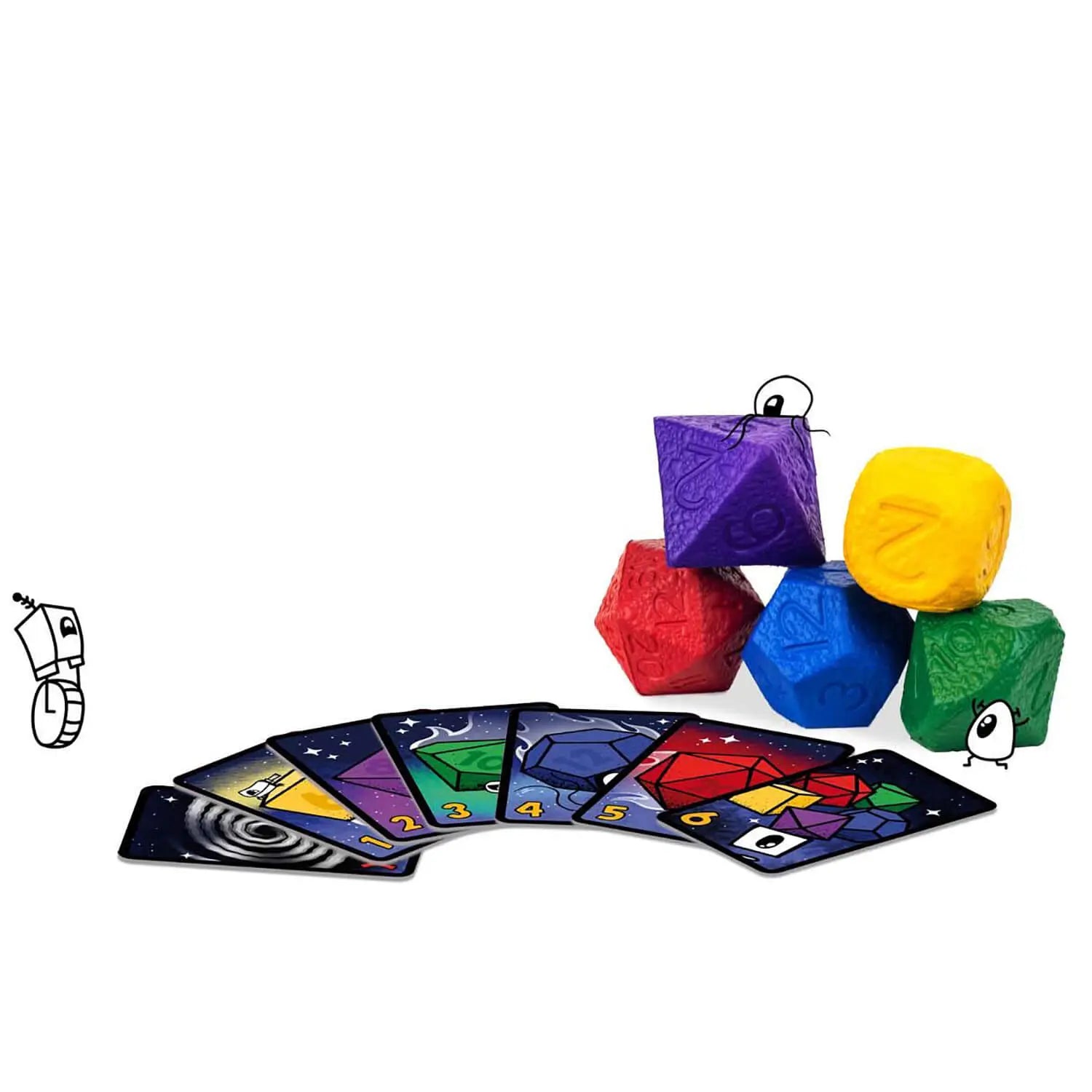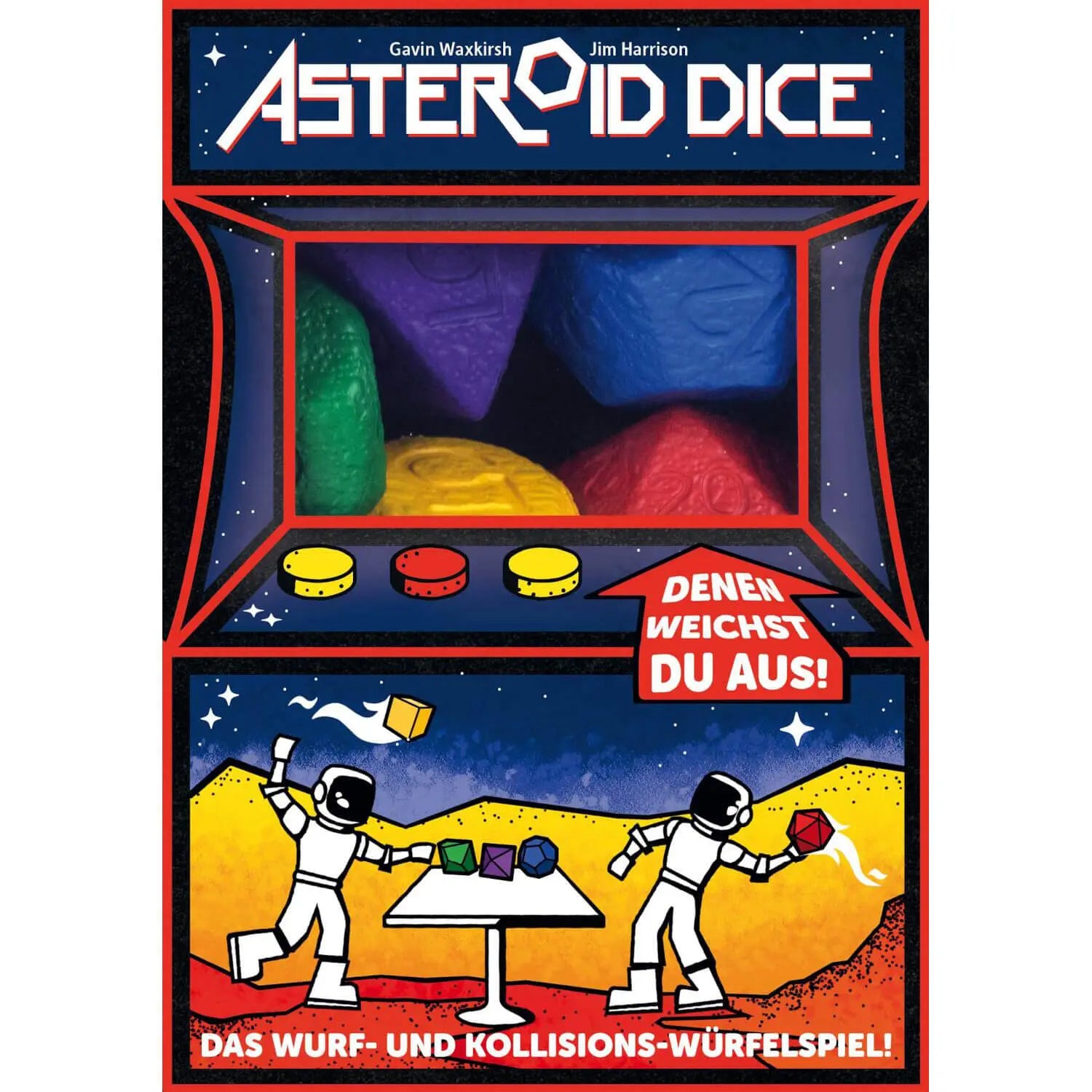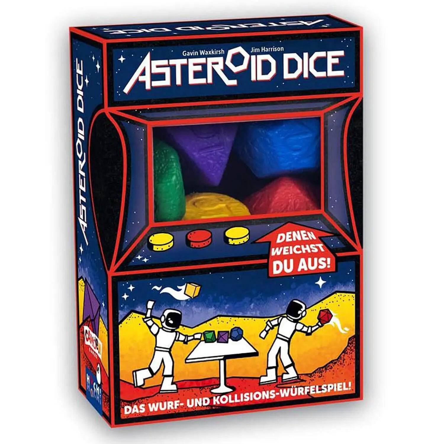 Das erste seiner Art - ein Schaumstoff-Strategie-Partyspiel zum Würfeln und Werfen! Asteroid Dice entstand aus einer Liebe zu Würfeln und Völkerball! Eine brenzlige Kombination? Nein, aber eine lustige! Wird einfach deine Schaumstoffwürfel und lass sie aufeinanderrollen, um in jeder Runde die höchste Augenzahl zu erzielen und alle Karten auf der Asteroidenfeld zu gewinnen. Wähle einen Würfel aus der Mitte des Tisches, aber wenn jemand denselben Würfel wählt, dann kämpft ihr darum, wer den Würfel bekommt und wer seine Karte verliert!