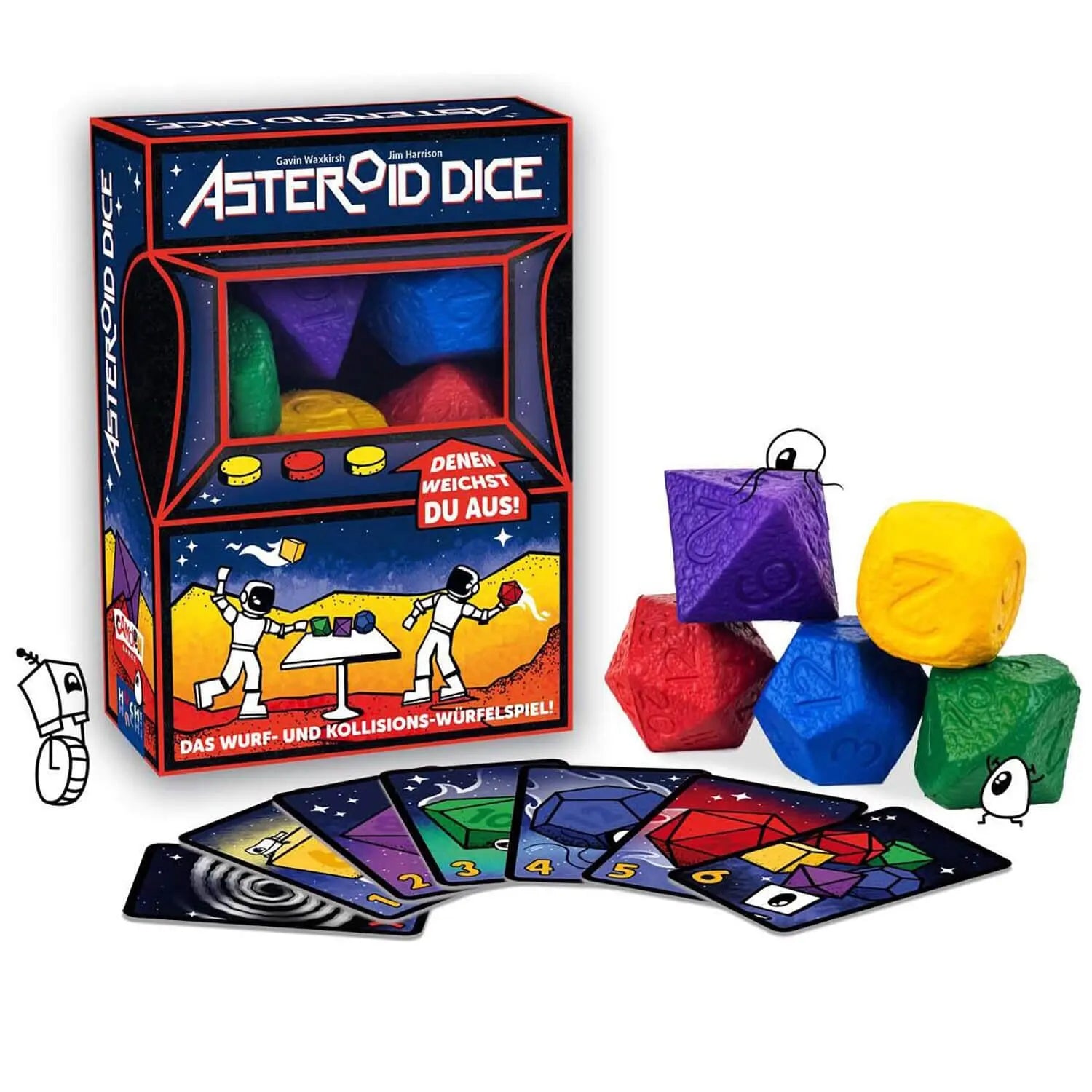 - Inhalt5 Schaumstoffwürfel, 25 Asteroidenkarten, 10 Spezialkarten, 1 Spielanleitung