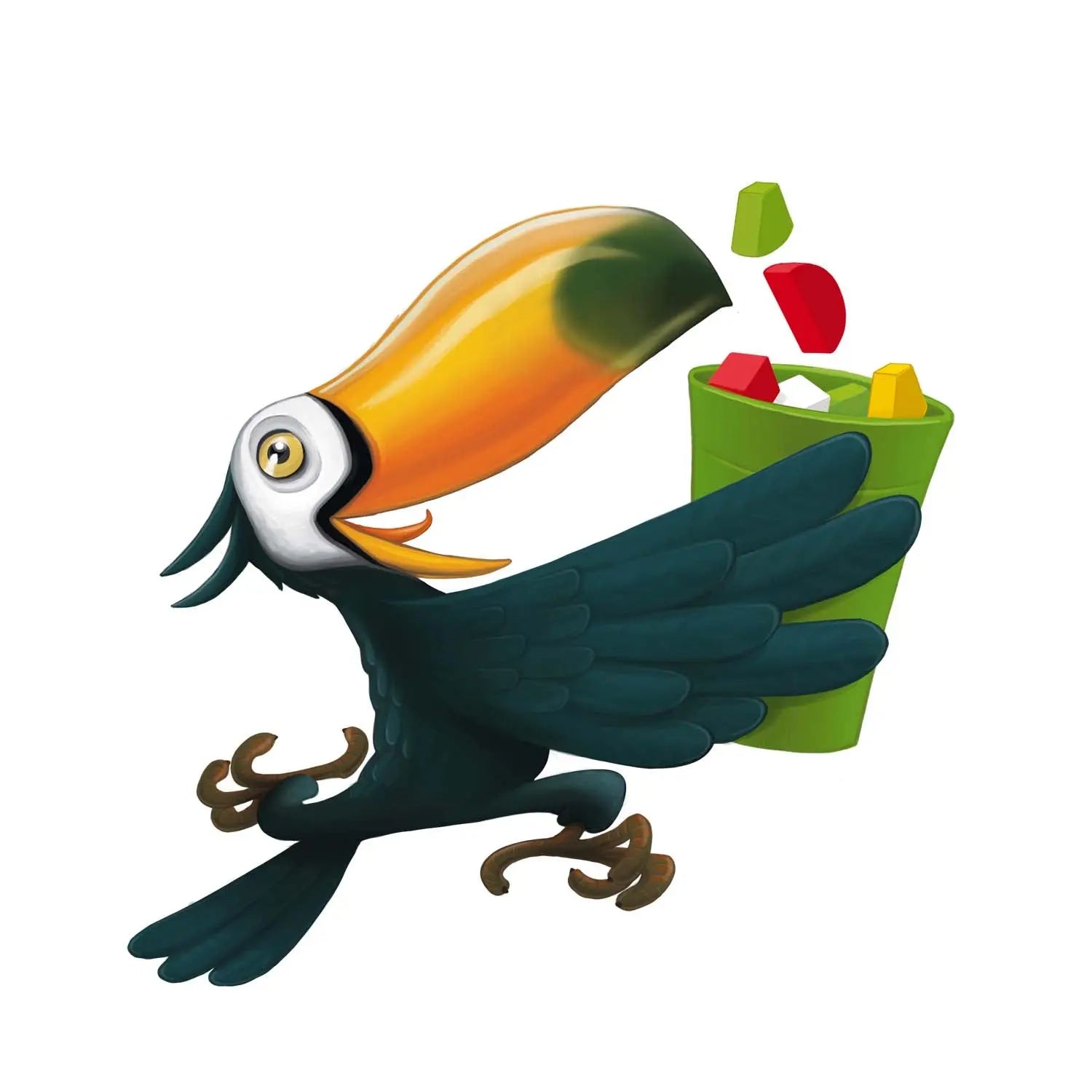 6 Plastikbecher, 6 Plastiklöffel, 60 Holzfrüchte, 6 Playerboards, 60 Punktemarker, 6 Tieruntersetzer, 18 leichte Rezeptkarten, 42 schwierige Rezeptkarten