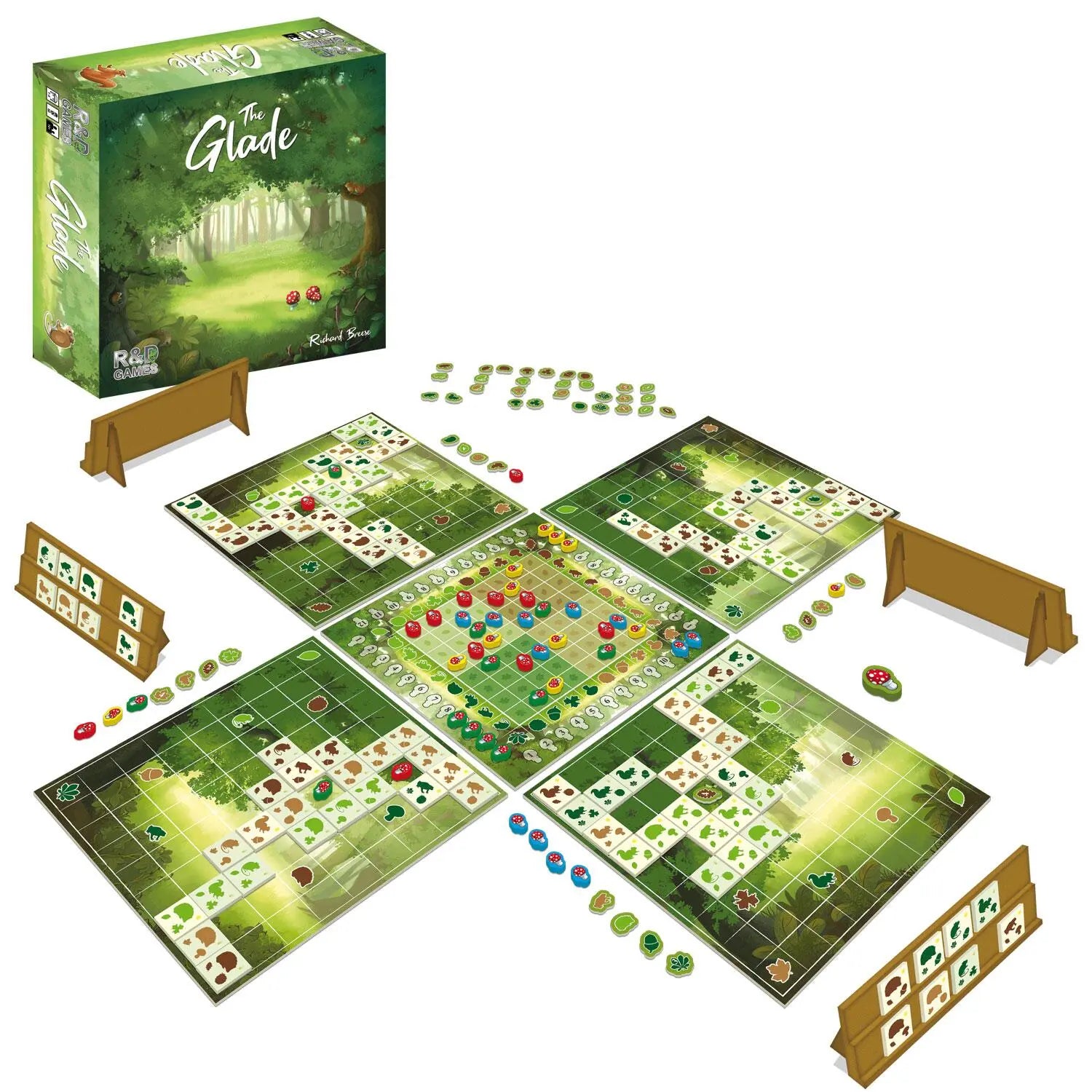 Es ist Sommer, und mitten im Wald liegt The Glade. In The Glade füllst du dein persönliches Waldbrett mit Sets aus Waldplättchen, die Kreaturen, Blätter und Waldfrüchte zeigen. Lege passende Sets aus drei Plättchen an, um deine Fliegenpilze im zentralen Lichtungstableau sprießen zu lassen. So machst du Punkte! Noch mehr allerdings, wenn du vom Lichtungstableau, durch Platzieren des richtigen Waldplättchens, Pilze wieder abräumst. Gelingt es dir, auch auf deinem Waldbrett Pilze zum sprießen zu bringen, kannst du diese für Bonuszüge abgeben, oder für weitere Punkte aufbewahren - solange sie dir niemand wegnimmt, indem er passend anlegt.