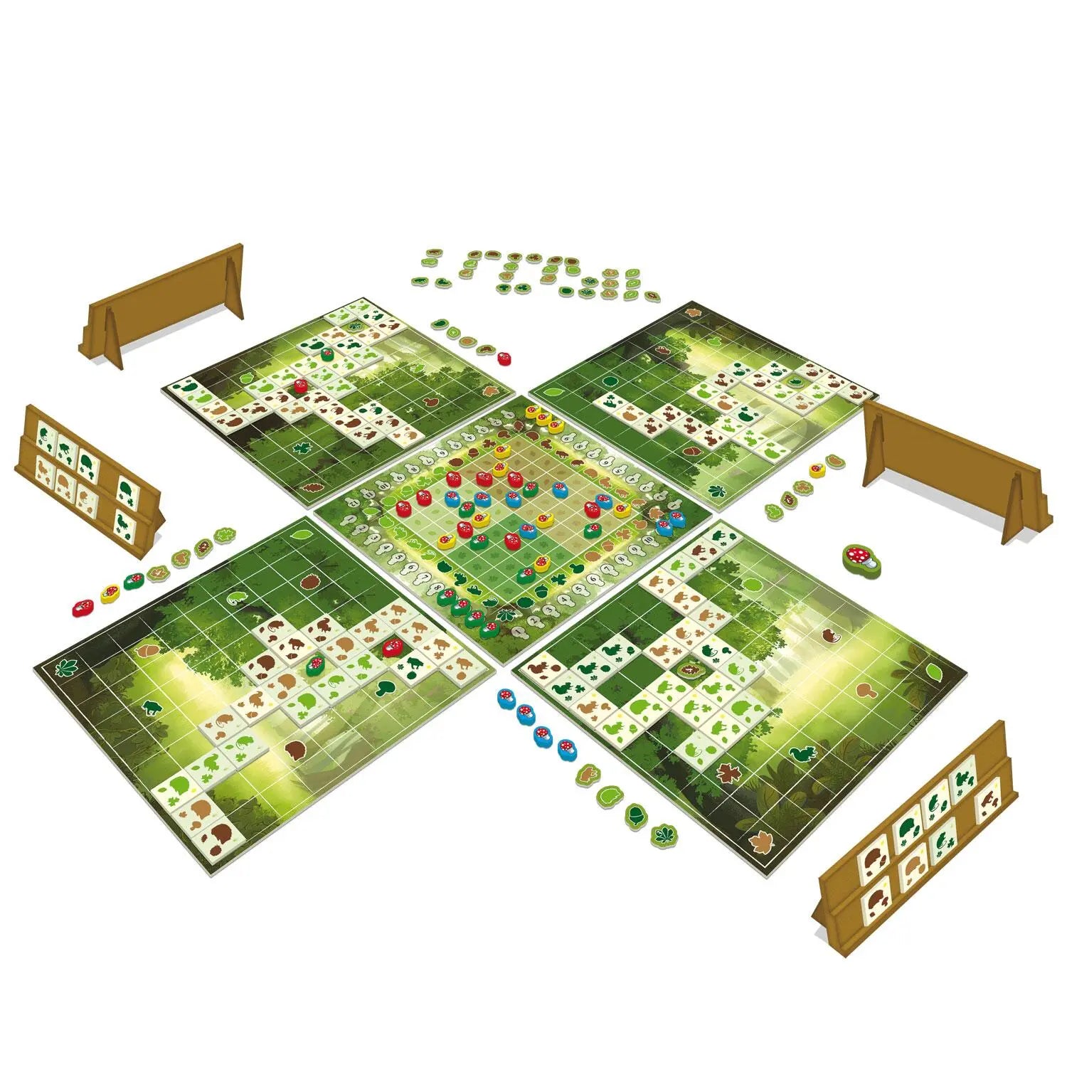 - Inhalt1 Lichtungstableau, 4 Waldtableaus, 48 Holzmarker, 128 Waldplättchen, 4 Plättchenbänkchen, 1 Startspielermarker, 48 Übereinstimmungsmarker, 1 Stoffbeutel, 1 Wertungsblock, 2 Regelhefte (D und ENG)