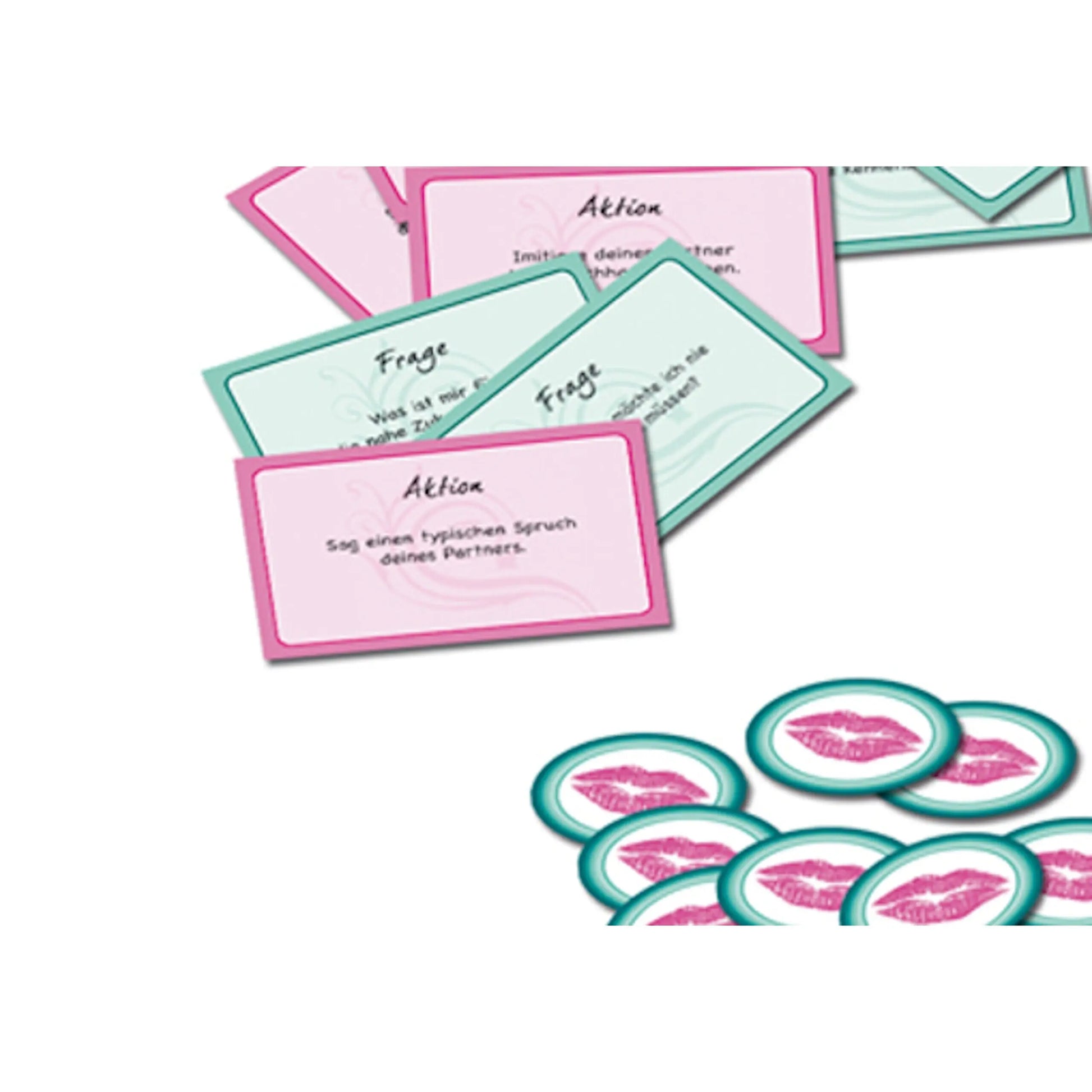 - Inhalt1 Spielplan / 1 rosa Herz / 1 schwarzes Herz / 110 Karten / 7 Hilfechips / 13 Kussmünder