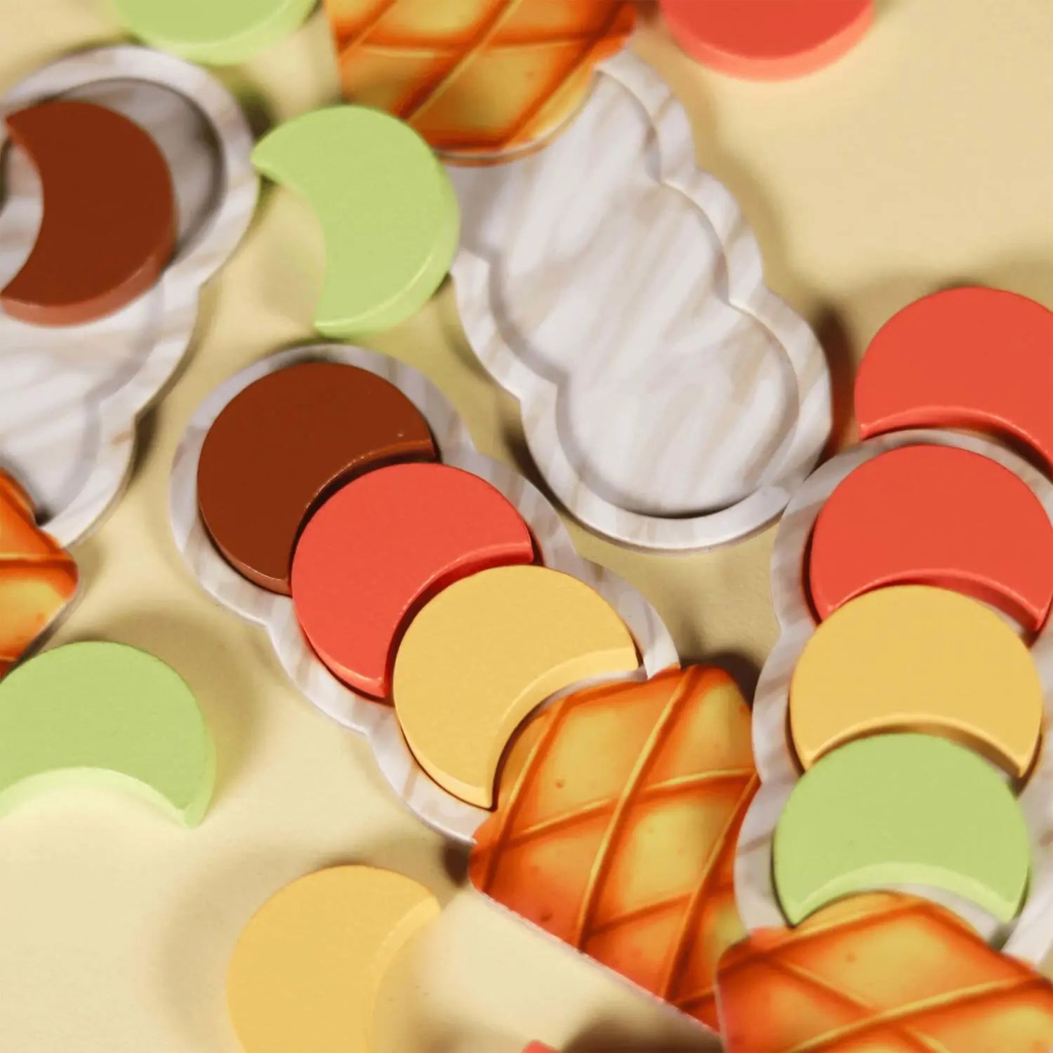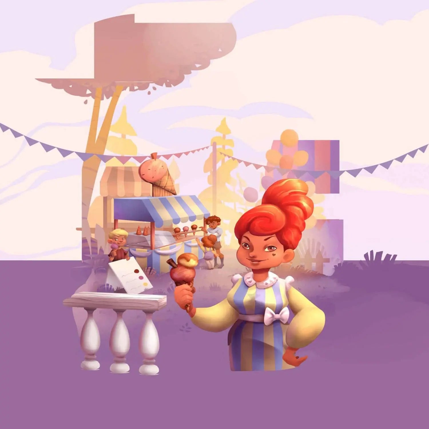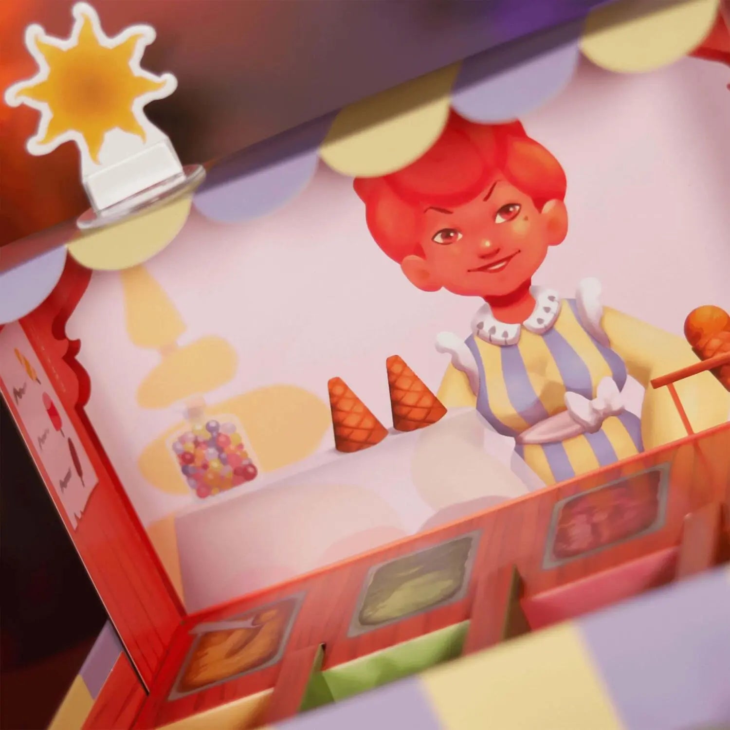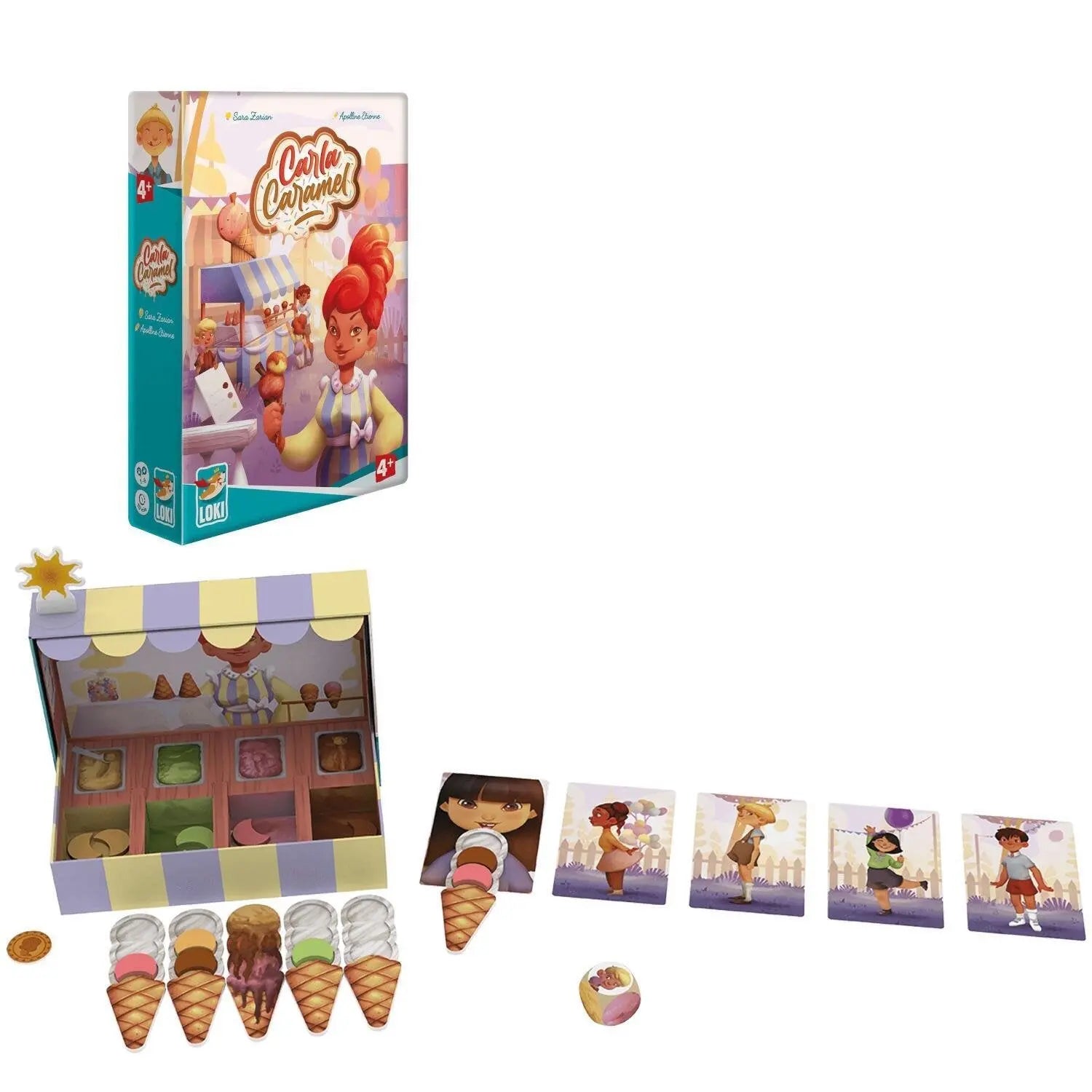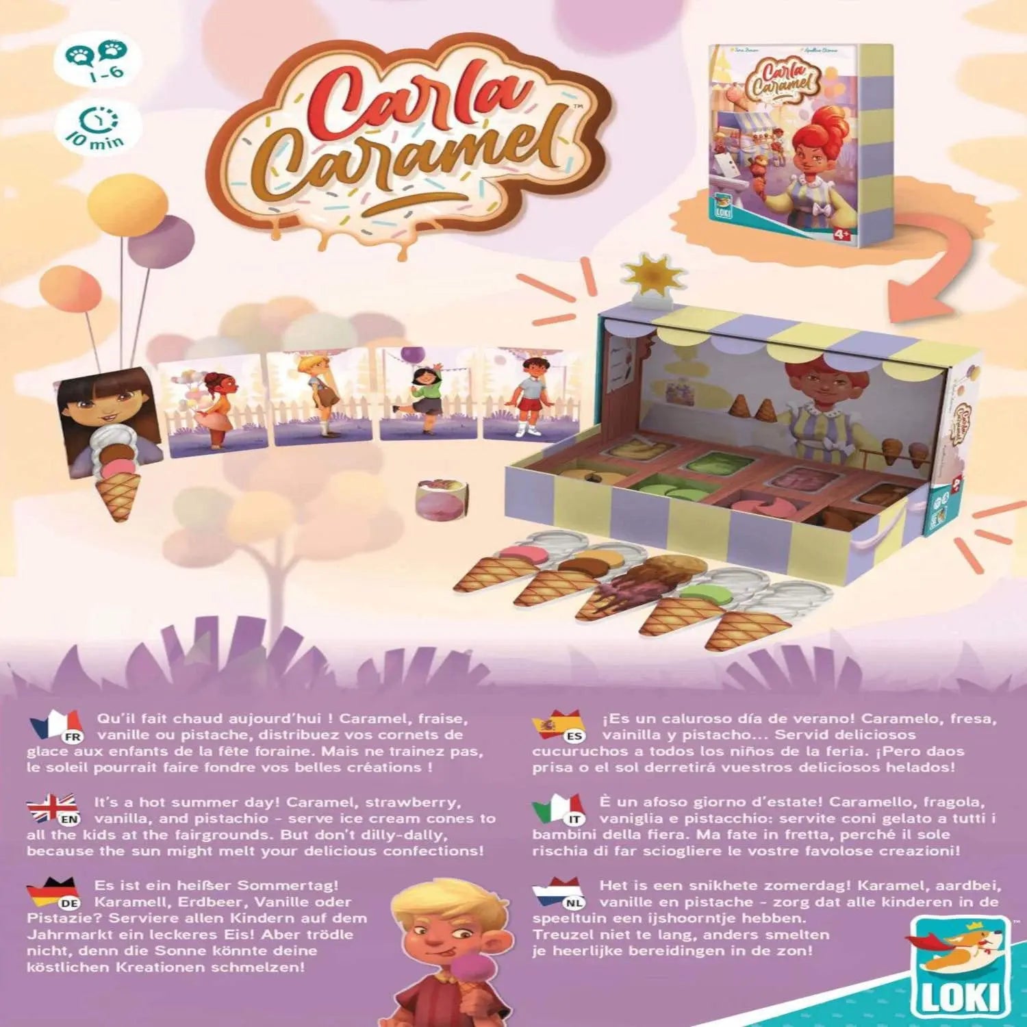 Heute ist es ganz schön heiß auf dem Jahrmarkt! So heiß, dass viele Kinder vor dem Eisstand von Carla Caramel Schlange stehen. Carla braucht eure Hilfe! Verteilt Carla´s köstliche Eiscreme schnell an alle Kinder in der Warteschlange. Es wäre schade, wenn das Eis in der Sonne schmilzt! Ein kooperatives Spiel für bis zu sechs Schleckermäuler.