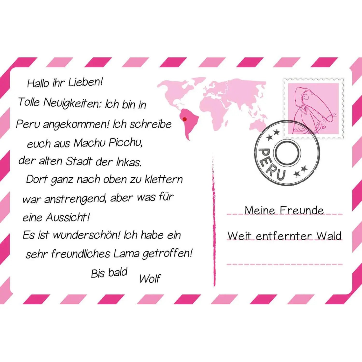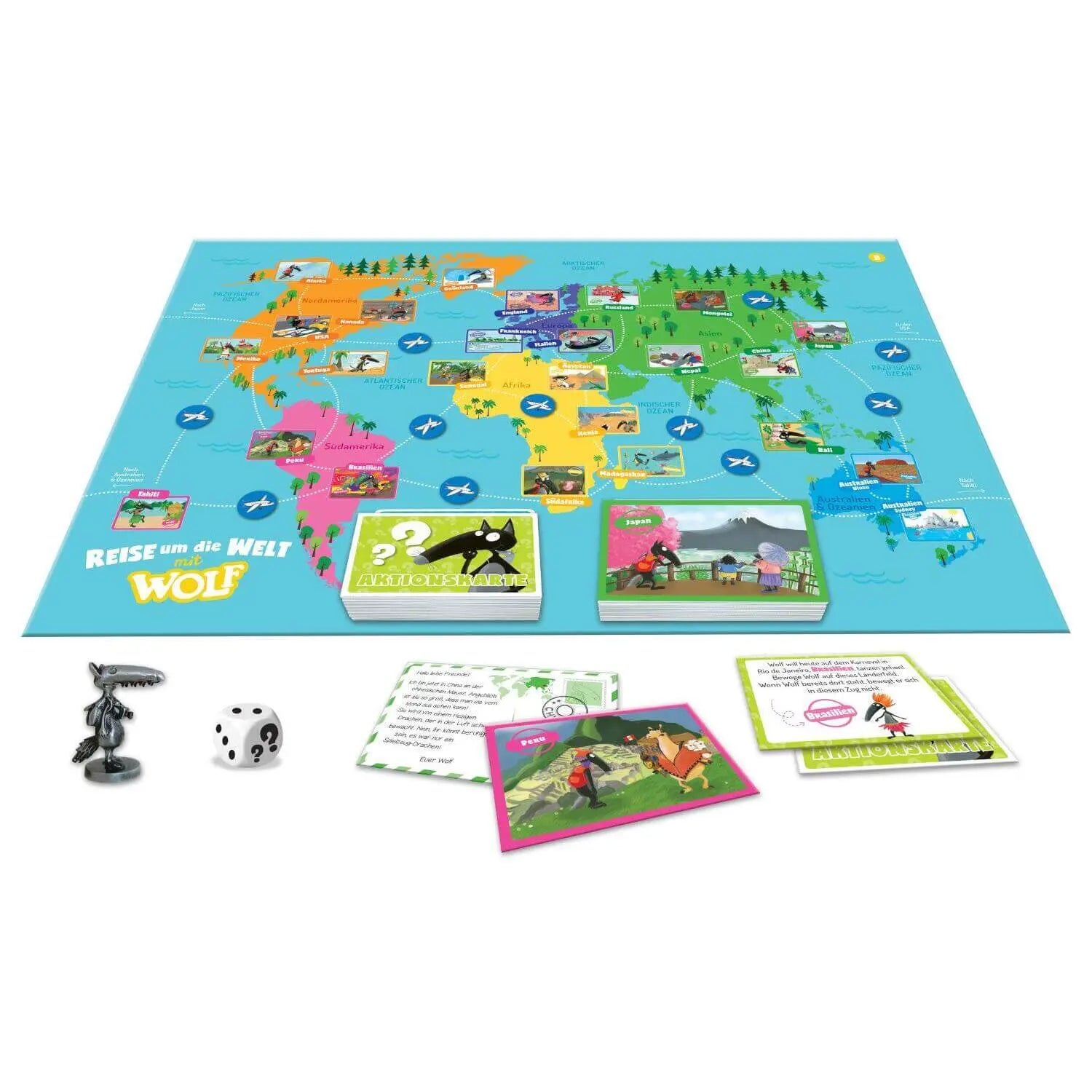 Wolf begibt sich auf eine Reise um die Welt! Während seiner Reise will er Postkarten an alle seine Freunde im tiefen, tiefen Wald schicken. Die Reise um die Welt ist ein Spiel, in dem es um Routenplanung und cleveres Kombinieren geht. Gute Reise!