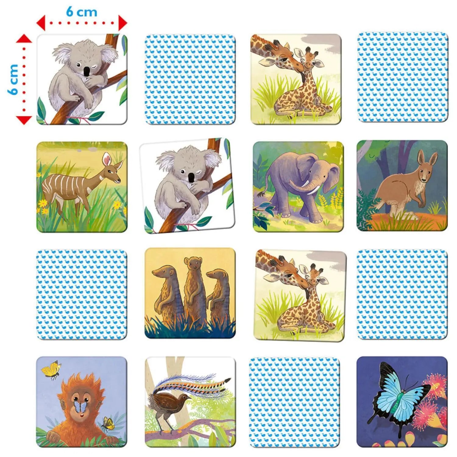 Unter welchem Kärtchen war noch gleich das Elefanten-Kind? Und wo lag die Giraffe? Schau ganz genau und finde die 28 bunten Tier-Paare! Dieses klassische Memo-Spiel mit wunderschönen, bunten Illustrationen aus den bliebten Bilderbüchern „Tierkinder und ihr Zuhause“ begeistert Jung und Alt und sorgt immer wieder für neuen Spielspaß.