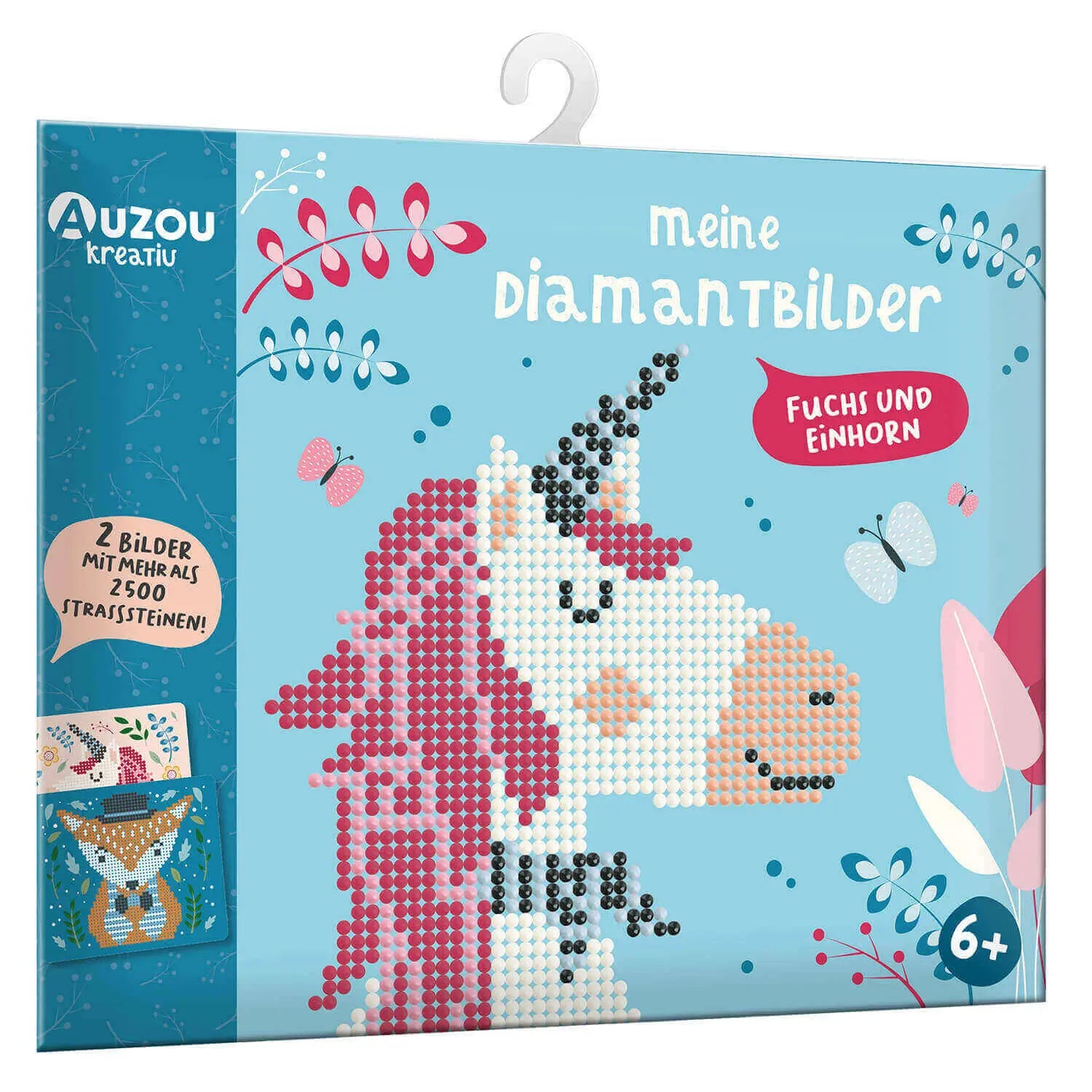 - Inhalt2 Bilder - Fuchs und Einhorn, Stift, Wachs, mehr als 2500 Strasssteine in 7 Farben