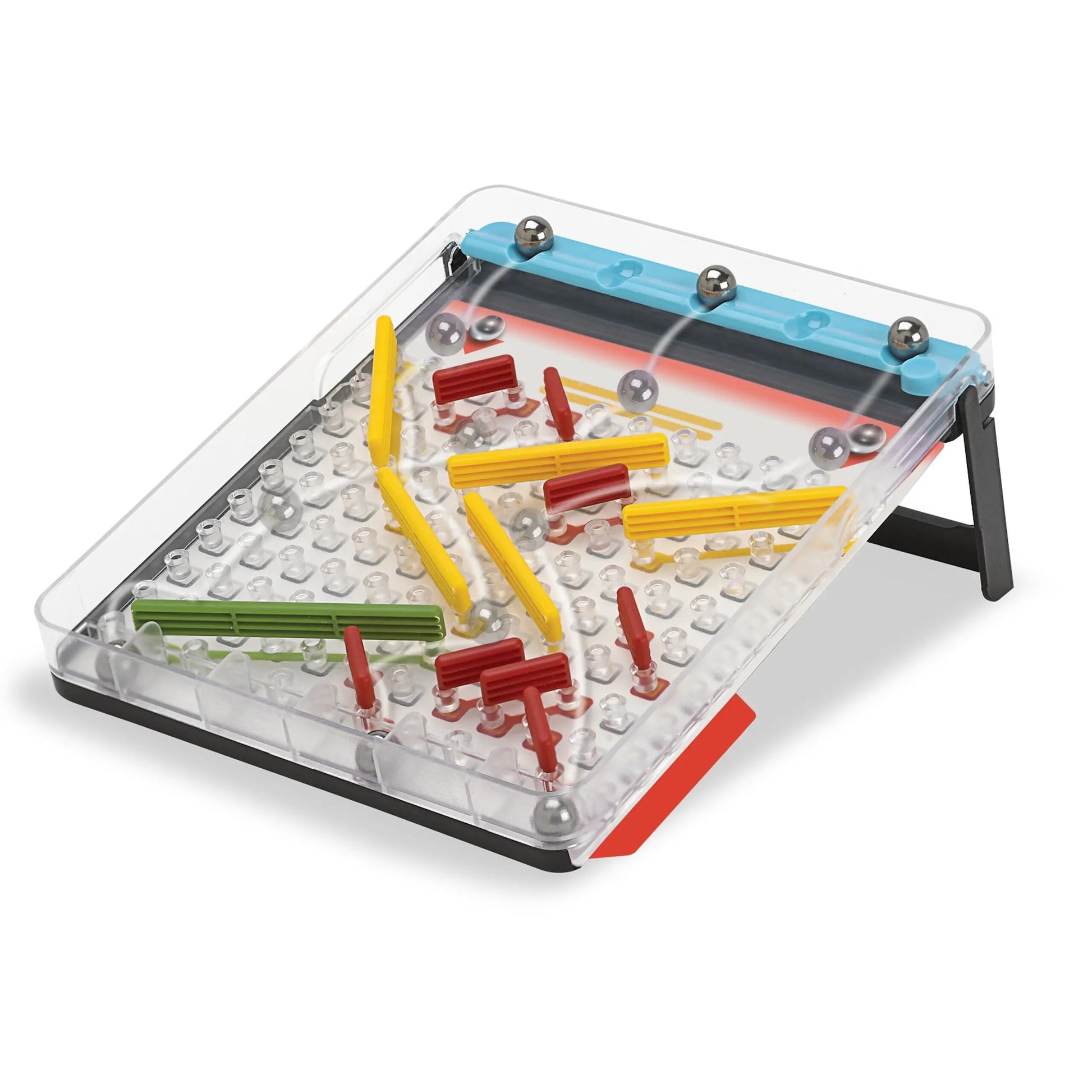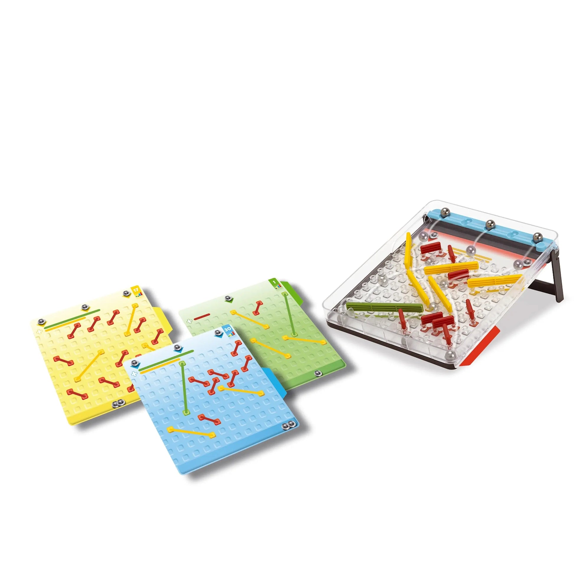 - Inhalt40 Aufgabenkarten mit Lösungen, 1 Spielbrett zum Aufstellen, 21 Barrieren, 5 Kugeln, Anleitung