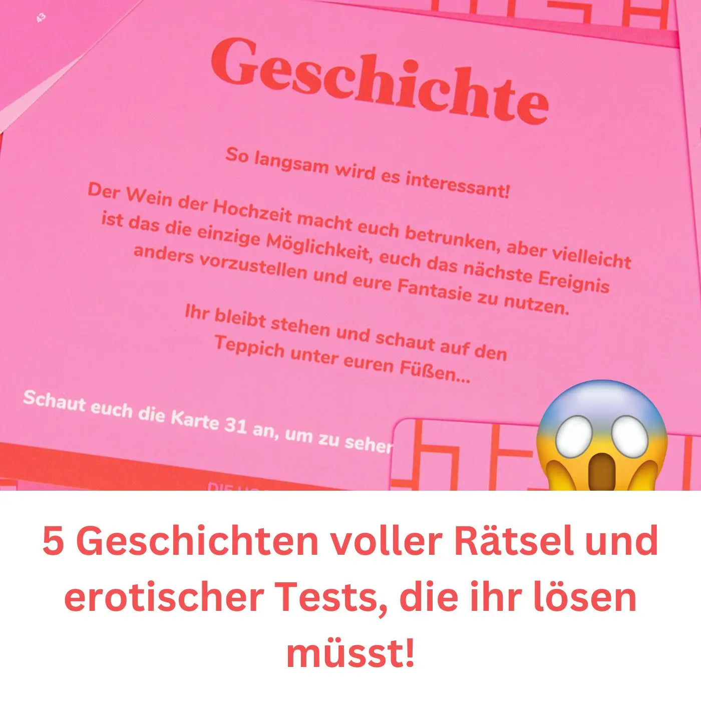 Du kannst die Mission nur erfüllen... indem du die Temperatur im Raum erhöhst! Ein Spiel für Paare, bei dem die Temperatur und die Aufregung im gleichen Tempo steigen. 5 Geschichten voller Rätsel und erotischer Tests, die du lösen musst, wenn du am Ende ein Happy End haben willst. Bist du bereit? Rätsel zu lösen war noch nie so spannend!