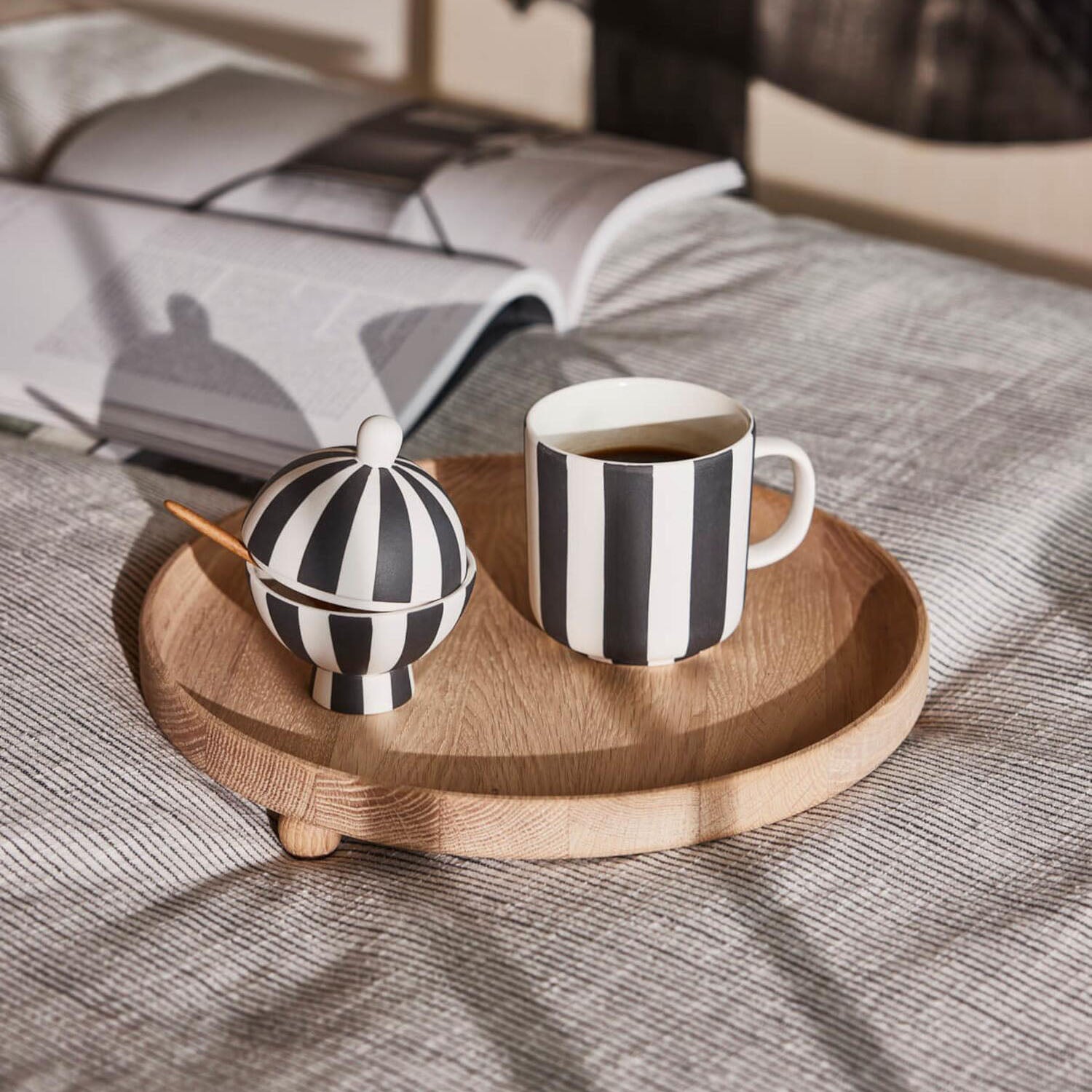 Willkommen in der zauberhaften Welt von skandinavischem Design mit der"Toppu" Bonbonniere von Oyoy. Diese edle Aufbewahrungsdose verleiht deinem Zuhause eine elegante Note und ist dabei ebenso funktional wie ästhetisch. Die "Toppu" Serie, bekannt für ihre markanten Streifenmuster und die harmonische Kombination aus Form und Farbe, bringt einen Hauch von Luxus in deinen Alltag. Ob du die Bonbonniere als stilvolles Versteck für deine liebsten Süßigkeiten nutzt oder kleine Schätze darin aufbewahrst - sie wird garantiert zum Blickfang in jedem Raum. Das feine Zusammenspiel von harmonischen Farbtönen vermittelt eine ruhige und gleichzeitig verspielte Atmosphäre, die sich perfekt in jede Einrichtung einfügt.