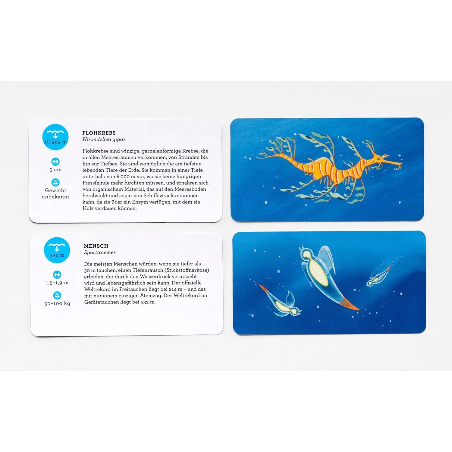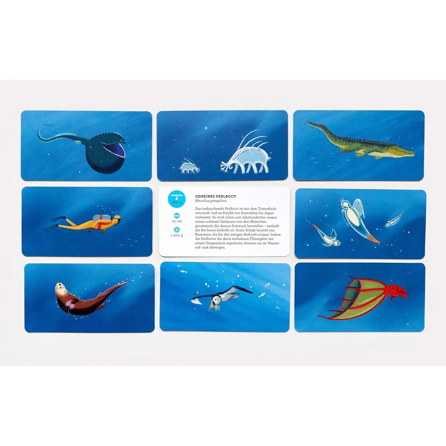Auf dem Weg bis hinab in den Marianengraben lernen wir, welche Meereswesen in welcher Tiefe leben. Vier Spielvarianten sorgen für abwechslungsreichen Spaß.