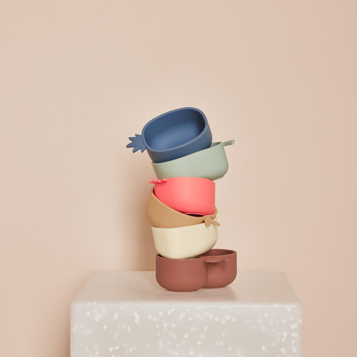 OYOY Mini Snackschale "Yummy Ananas & Apfel" (Blau/Light Rubber)