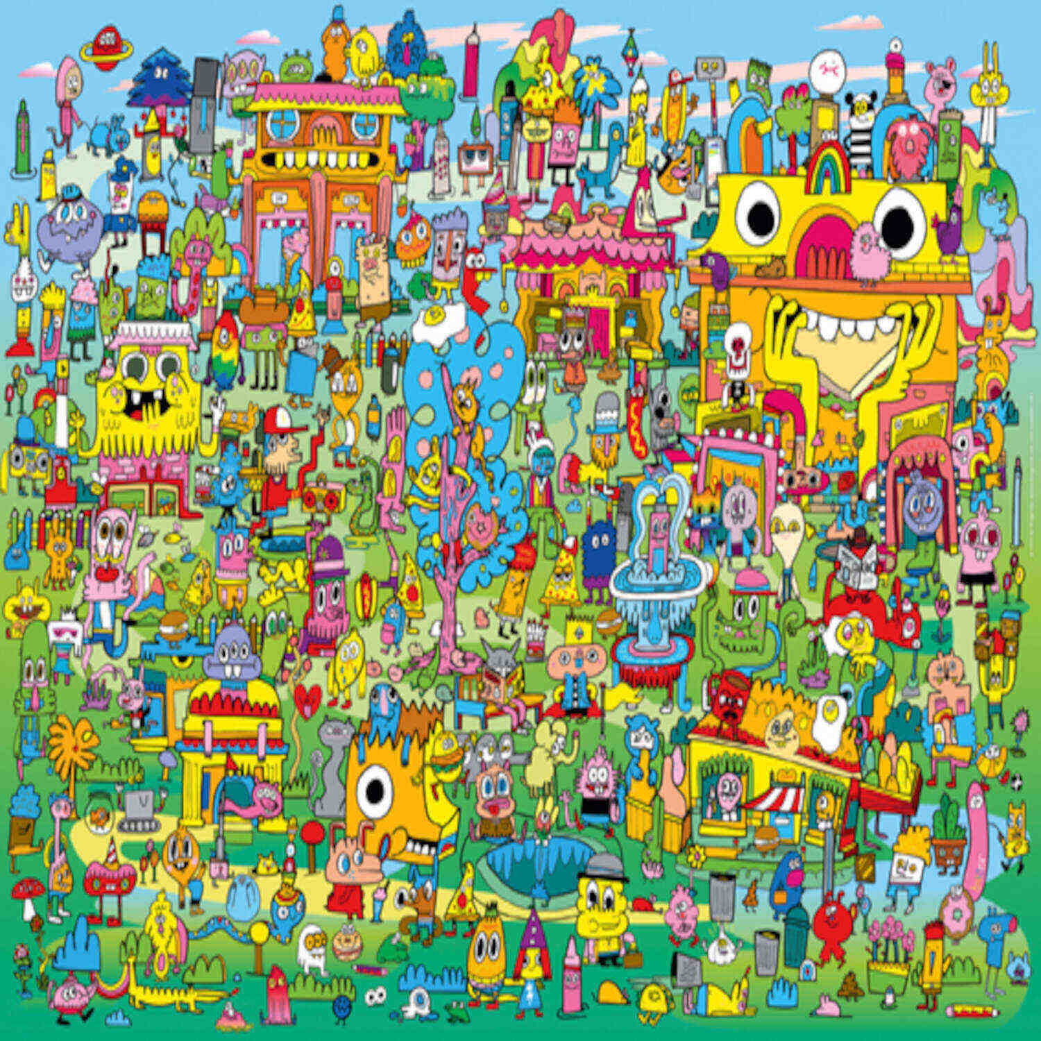 Hier wohnen sie also, die knuffig-bunten Doodle-Wesen, die Jon Burgerman mit ungezügelter Fantasie aufs Blatt bringt. Dieses Village ist definitiv eine Puzzle-Reise wert!