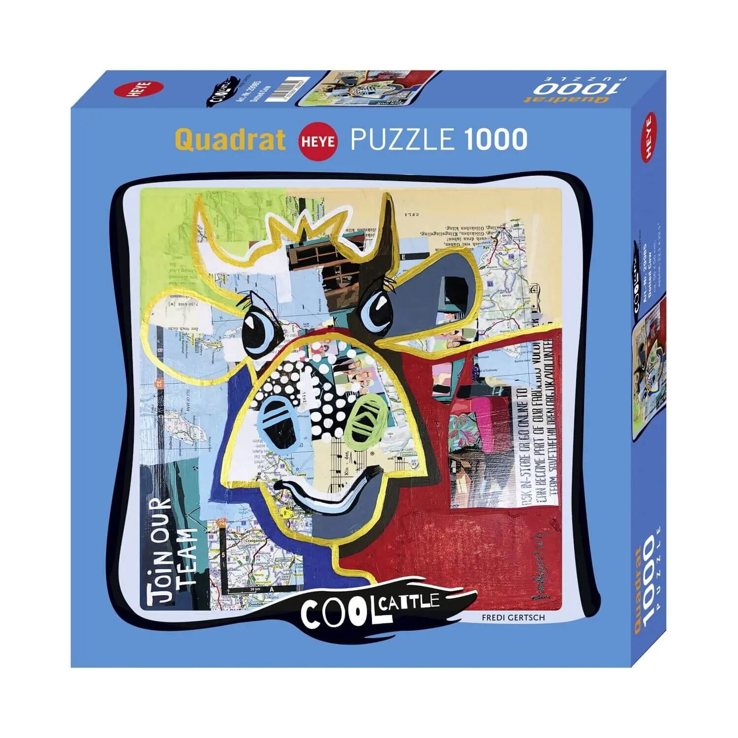 Dieses gepunktete Fleckvieh des Schweizer Künstlers Fredi Gertsch schaut so lustig und vergnügt in die Welt, das kann beim Puzzeln nur abfärben! Spaß im Quadrat also quasi!