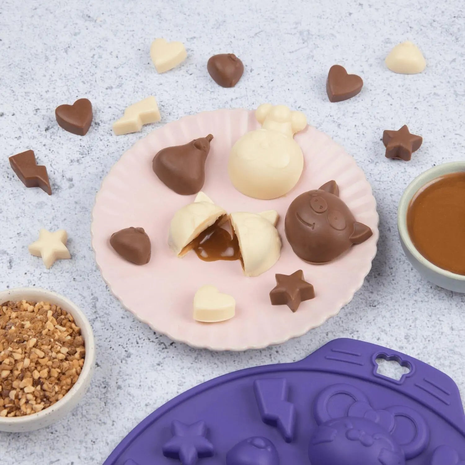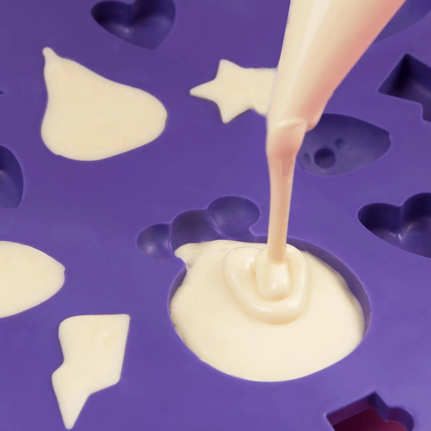 Form zur Herstellung von 21 verschiedenen Schoko-Leckerbissen. Die Schoko-Häppchen lassen sich leicht aus der Silikon-Form lösen. Strapazierfähige Form: Beständig gegen Temperaturen von -40 bis 230°C. Multifunktionalität für verschiedene Kreationen: Schokolade, Bonbons, Eiswürfel, Seife.
