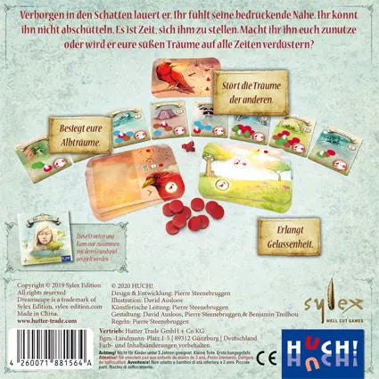 Erweiterung: Gespielt wird mit den Albtraumreglen (für Fortgeschrittene) - es kommen Albtraumkarten sowie eine Rabenfigur ins Spiel, wodurch sich neue Möglichkeiten für die roten Traumsplitter ergeben.
