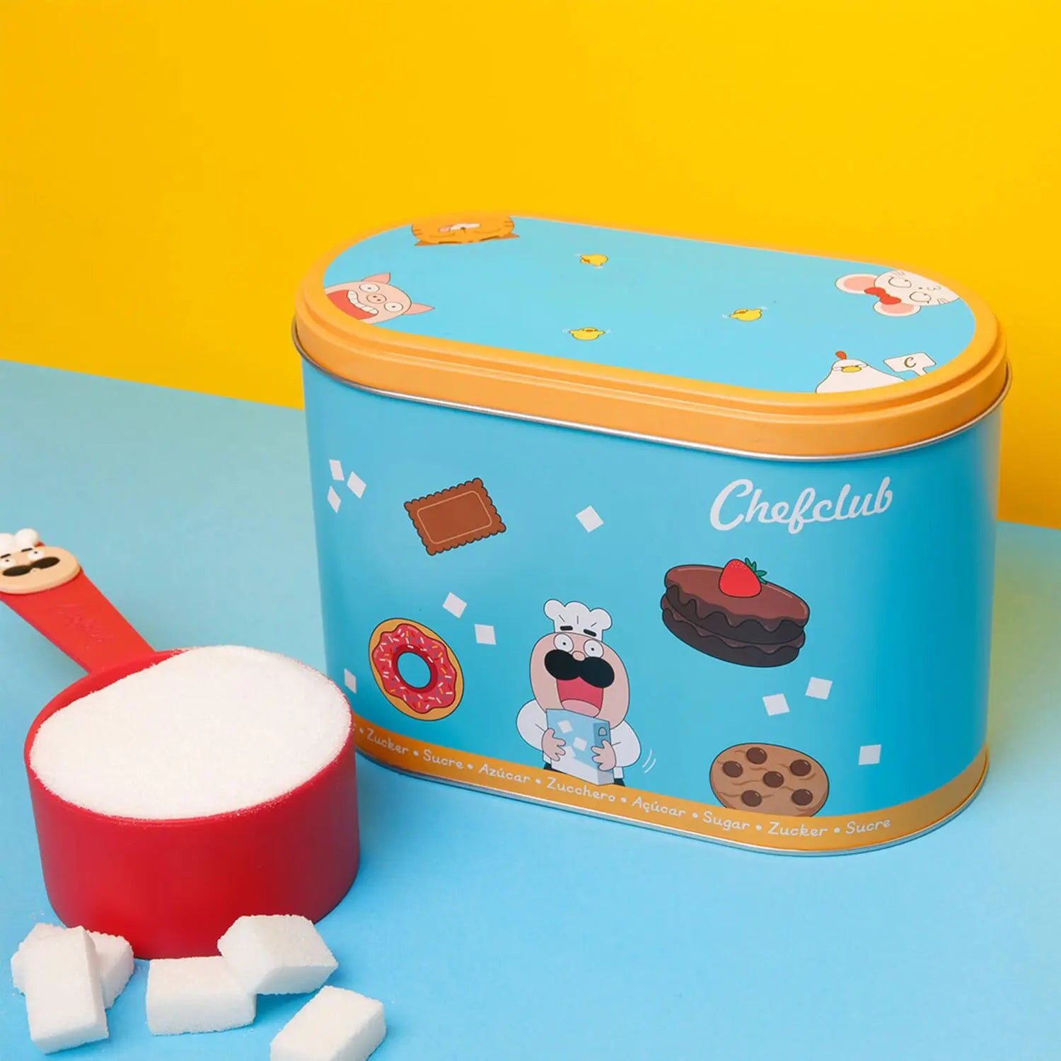 Die Zuckerdose von Chefclub überzeugt mit einem Fassungsvermögen von 1,5 kg Mehl. Die Dose ist Chefclub Messbecher kompatibel. Die Größe ist so ausgewählt, dass man mit Leichtigkeit mit dem Messbecher durch die Dose tauchen kann. Das Design wurde mit Hilfe der Chefclub Fans ausgewählt.